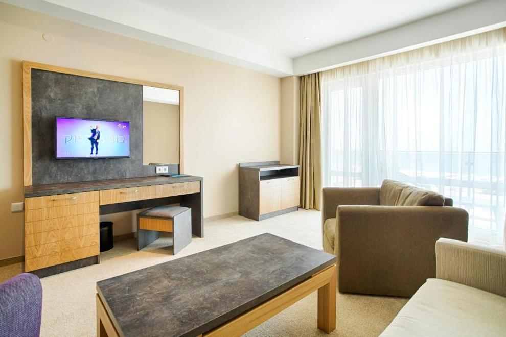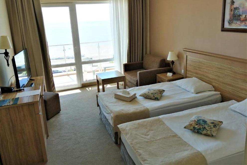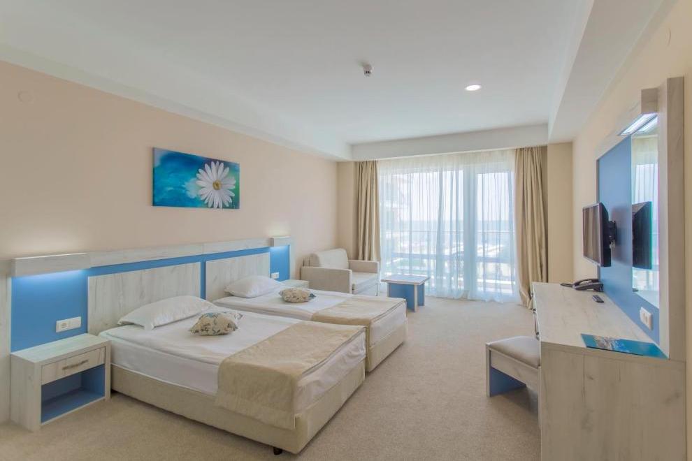Хотелският комплекс е стратегически разположен на първа линия, в северната, по-спокойна и луксозна част на курорта.