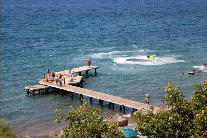 Faustina Hotel се намира на собствен пясъчно-чакълест плаж, има кей. Хотелът разполага също с един открит плувен басейн за възрастни с детска секция. Чадъри и шезлонги на басейна и на плажа - безплатно.