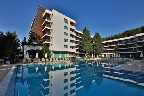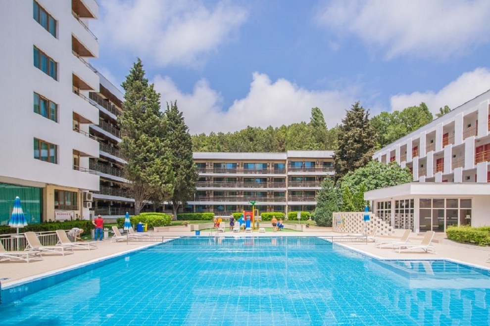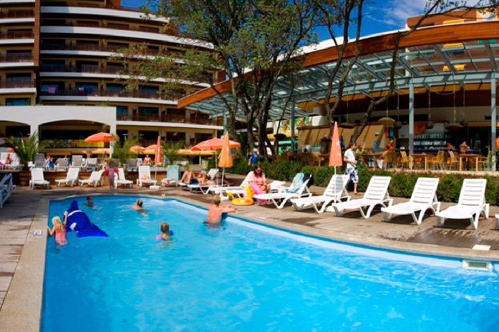 Обособена зона на плажа с привилегирован достъп за гостите на хотела. Хотелът разполага с общо четири басейна, единият от които е с плавен преход и дава усещането сякаш се потапяте в морето. Всички гости на хотела са добре дошли на анимационните програми, които представят нашите аниматори шест дни в седмицата, включително да участват в уникалната програма Sports Around. Водата във всички басейни е минерална с положителни свойства за нервната и опорно-двигателната система. Използването на басейните след 18:00 ч. не е препоръчително.