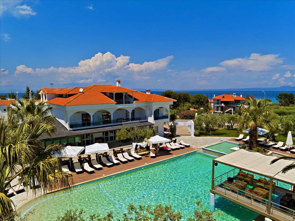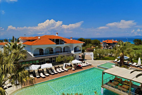 Описание Местоположение: Flegra Palace Hotel се намира на 150 км от летище Македония, на 1 км от курортното селище Ханиоти, на 500 м от селището Пефкохори на ръкава Касандра в Халкидики. Настаняване: Flegra Palace Hotel разполага с общо 80 стаи за гости. Всички стаи са оборудвани с индивидуален климатик, сателитна телевизия, сейф (срещу допълнително заплащане), мини хладилник, баня с душ или вана, сешоар, тераса или тераса. Стаите се почистват всеки ден, спалното бельо се сменя два пъти седмично. Храна и напитки: Flegra Palace Hotel разполага с един основен ресторант, два бара - на лоби и бар на басейна. Удобства и забавления: Flegra Palace Hotel предлага възможност за отдих и забавления на 1 открит басейн за възрастни, 1 открит плувен басейн за деца, SPA центъра (сауна, парна баня, джакузи), тенис корт, тенис маса, детски клуб, игрище за плажен волейбол. Wi-Fi интернет е наличен на територията на целия хотел срещу допълнително заплащане. Хотелът разполага с безплатен частен паркинг. Плаж: Flegra Palace Hotel се намира на 150 м от пясъчно-чакълест плаж. Чадъри и шезлонги край басейна - безплатно, на плажа - срещу допълнително заплащане.