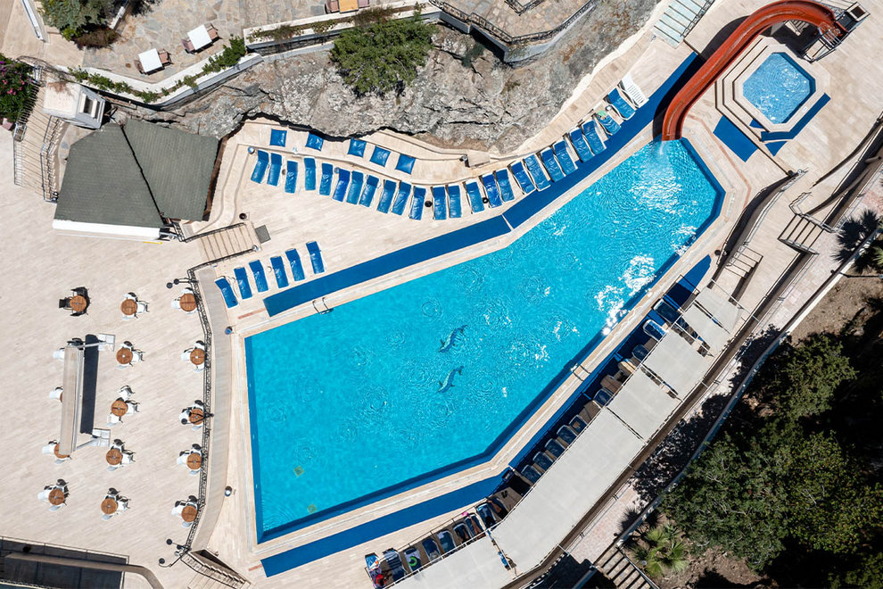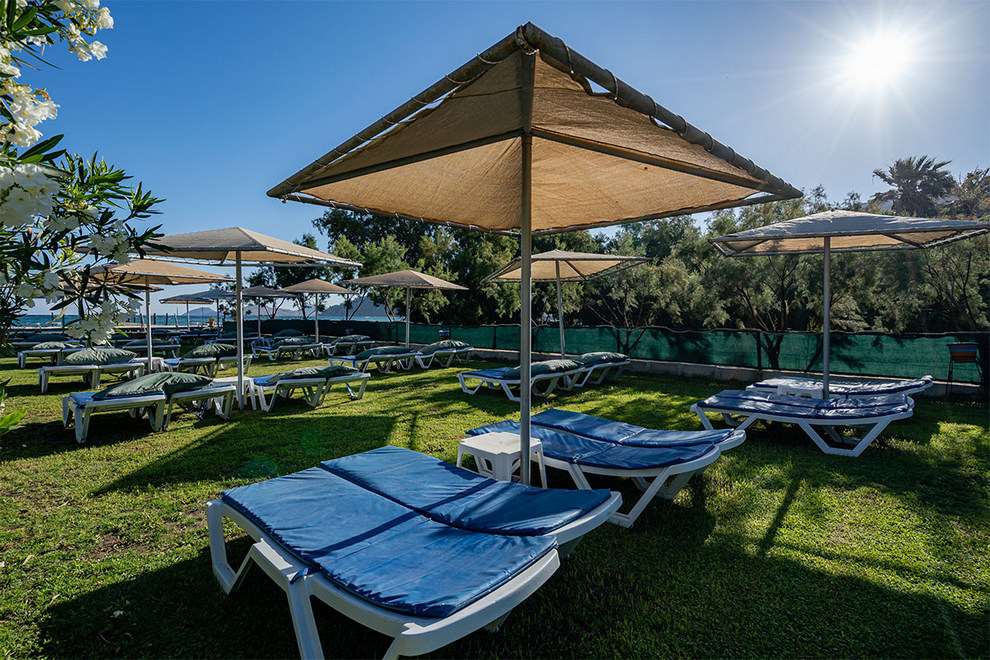 Собствен пясъчен плаж на 400 м от хотела, безплатен шатъл до хотела. На разположение на гостите има два открити басейна, водна пързалка.