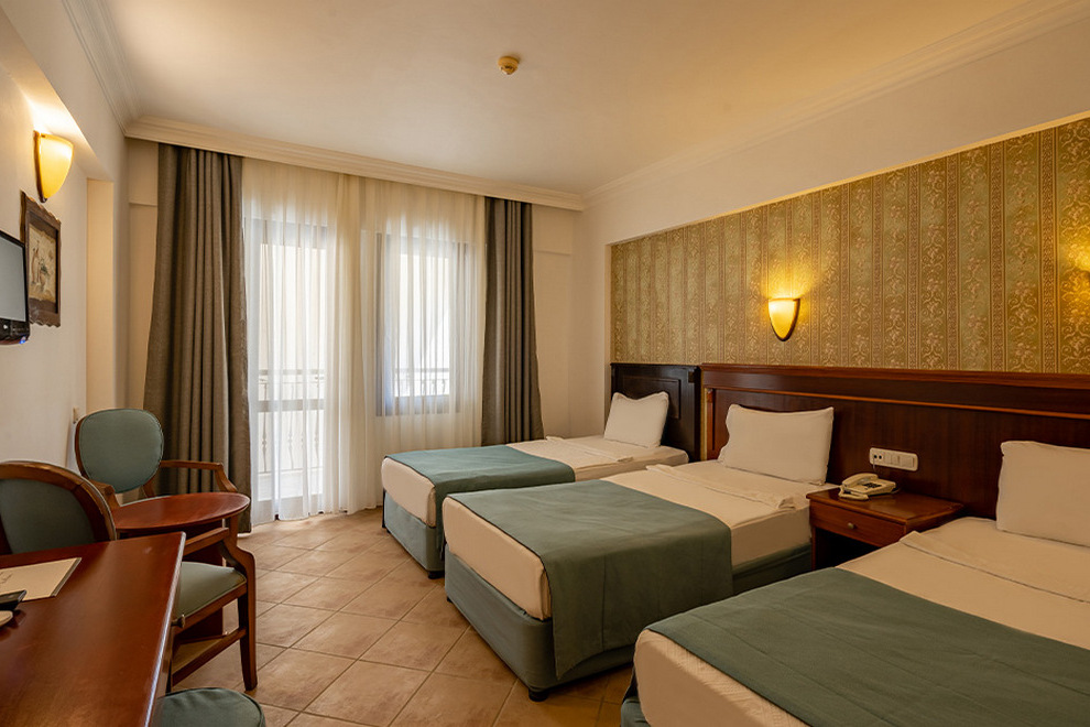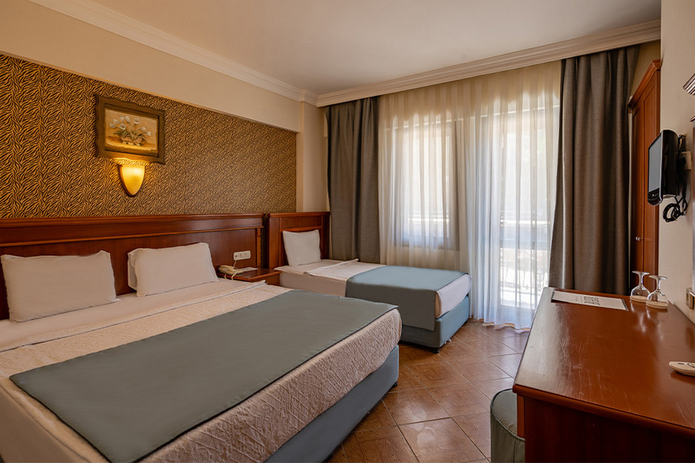 Хотелът посреща гостите си в 168 климатизирани стаи, от които 153 стандартни стаи, 6 икономични стаи без балкон и 9 фамилни стаи. Те са оборудвани с телевизор, телефон, минибар, баня с душ, сешоар, балкон. Почистване на стаите - всеки ден, смяна на спалното бельо и кърпите - 3 пъти в седмицата.