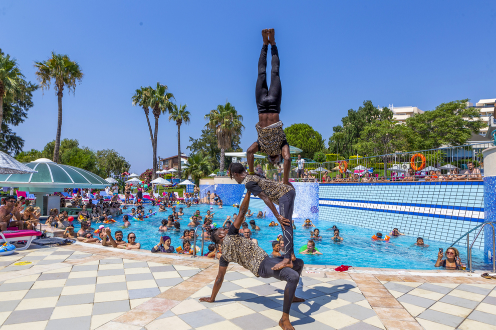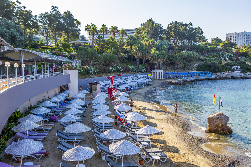 Собствен пясъчен плаж, дълъг 200 м. Хотелът разполага с два открити басейна за възрастни и един за деца. Чадъри, шезлонги, матраци и хавлии на басейните и на плажа - безплатно.