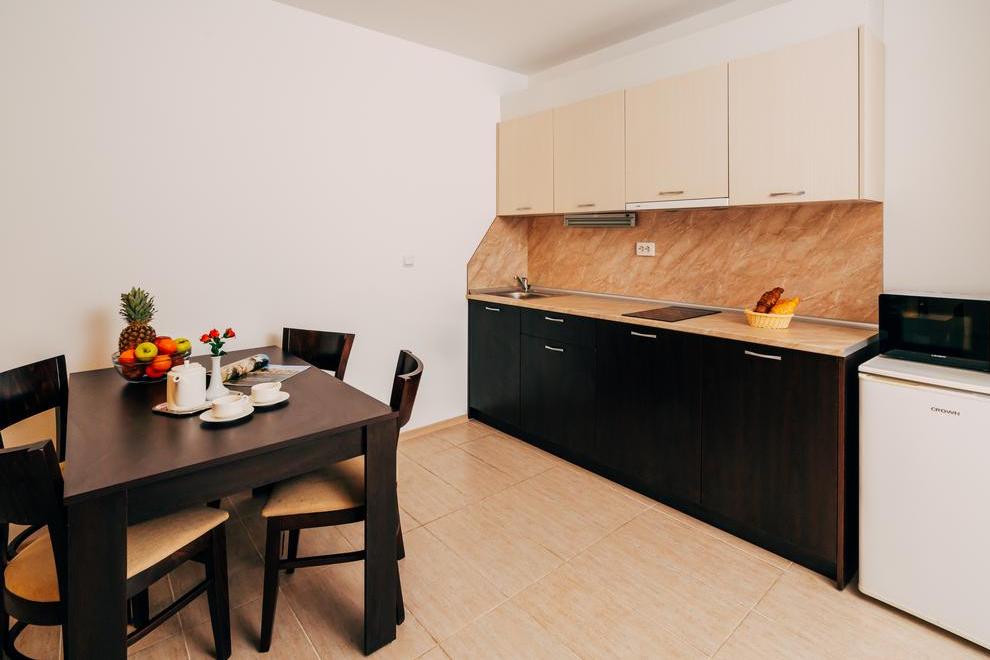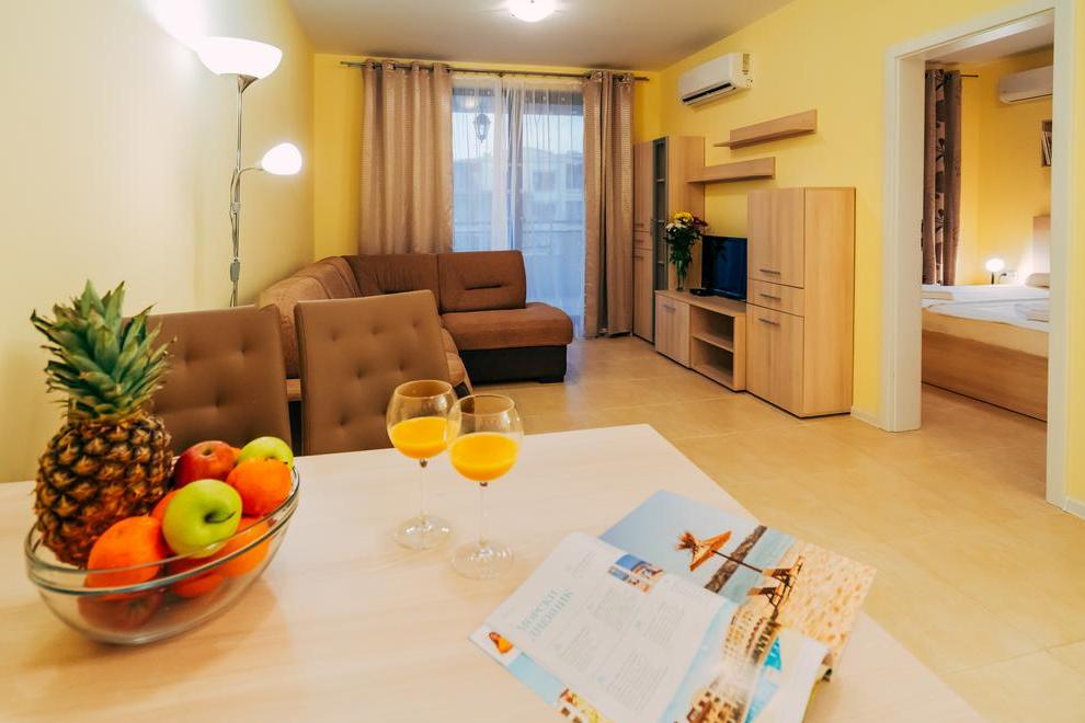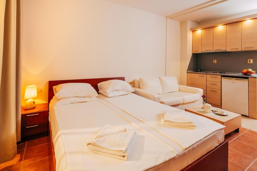 Студията са обзаведени с комфортно двойно легло, кът за отдих, кът за хранене и оборудвана кухненска ниша. Апартаментите с една спалня разполагат с отделна спалня и просторна дневна с кухненска ниша и разтегаем диван, имат и тераса.