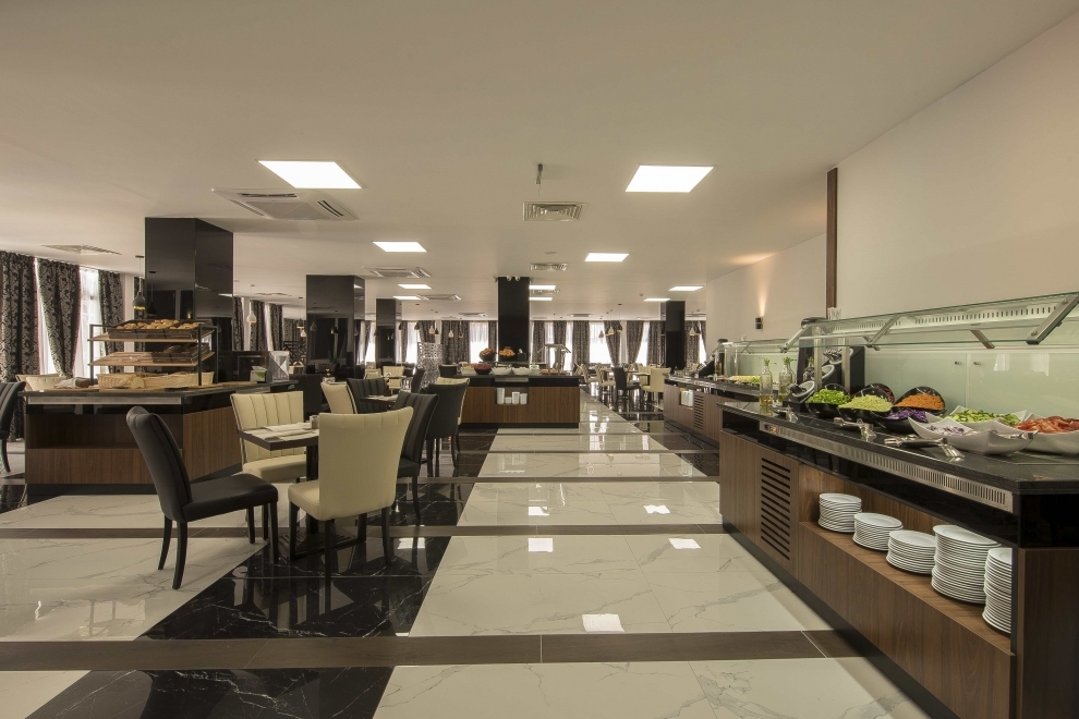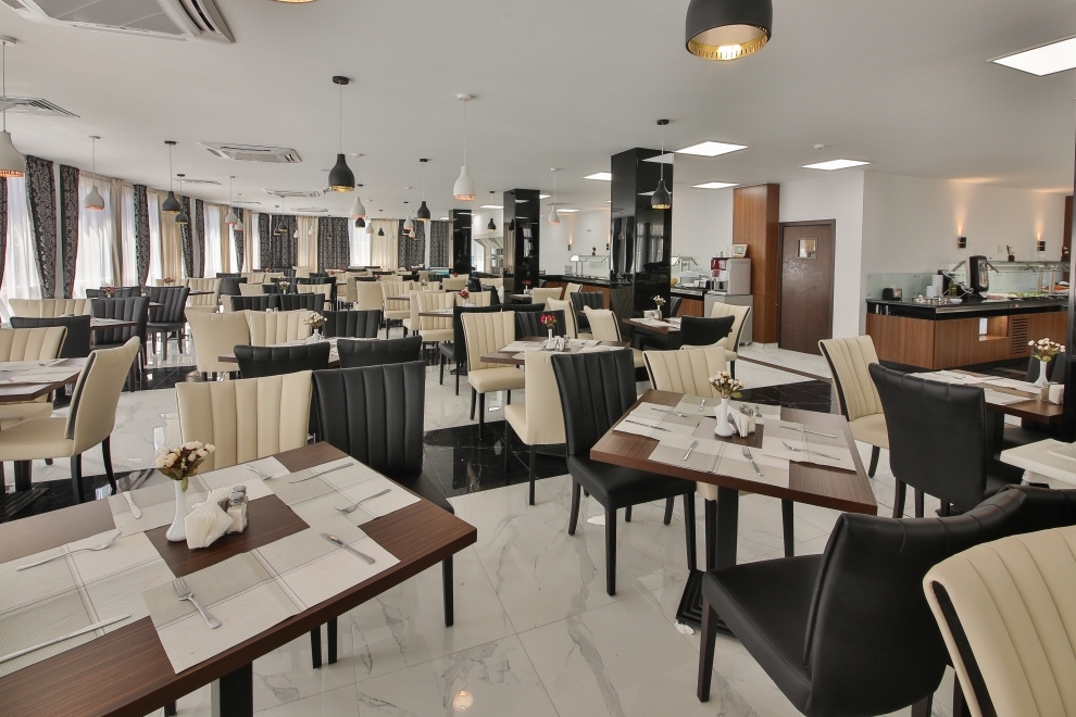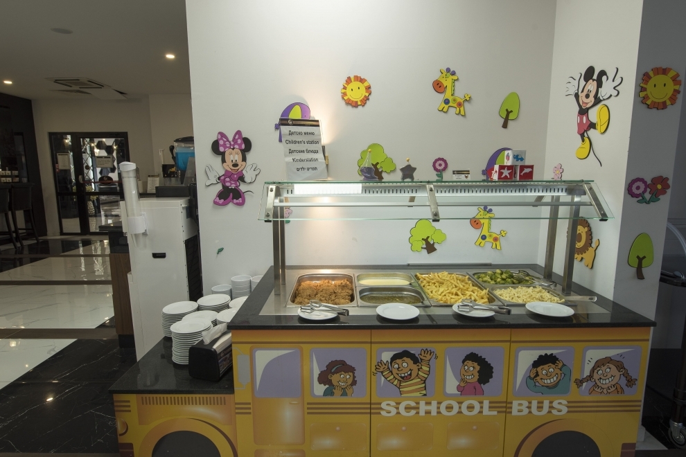 На разположение на гостите на хотела са: Ол инклузив ресторант, сладкарница, Лоби бар, Пул бар. Ресторантът е на база ол инклузив и е разположен до лобито. От него се открива прекрасен изглед към градината на хотела и плувния басейн.