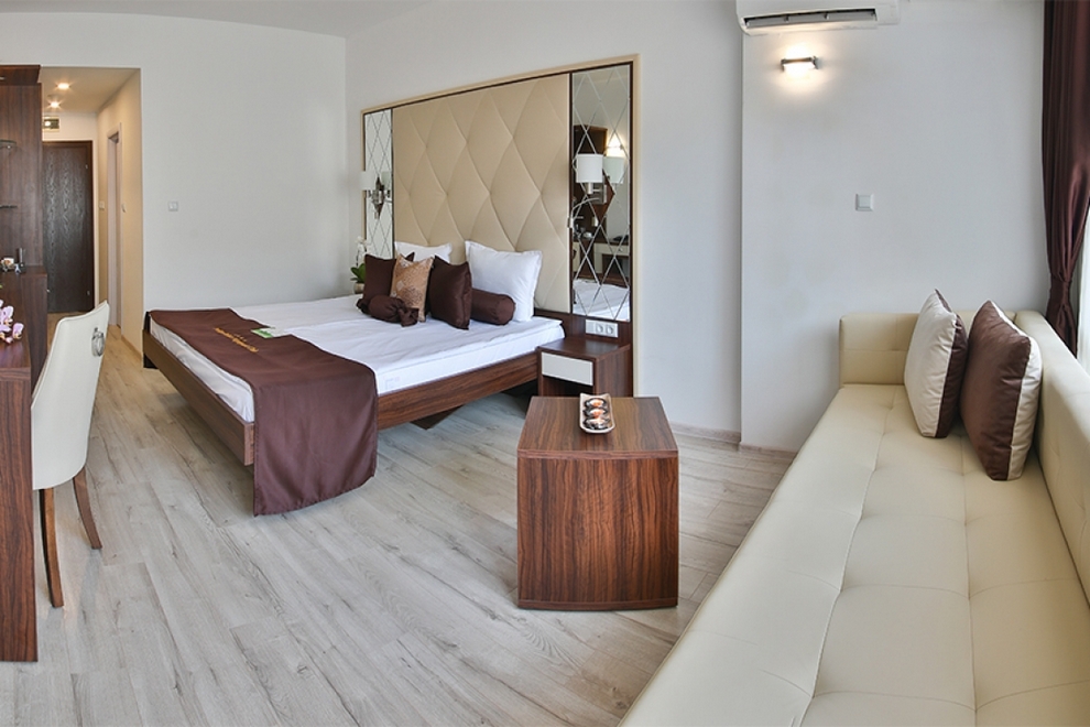 Хотелът разполага с Двойни Делукс стаи, Делукс Фемили стаи, Двуспални Делукс Суит, Премиум стаи, Комфорт стаи /единични/. Всички стаи са с модерен интериор, а обзавеждането е елегантно, комфортно и функционално. Стаите са особено подходящи за семейства с деца.