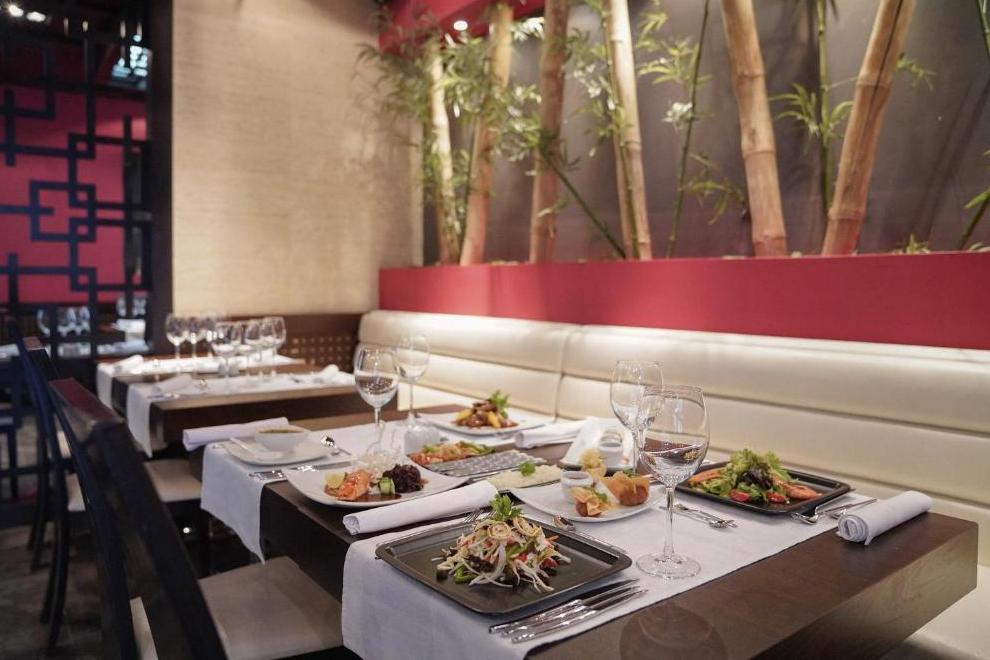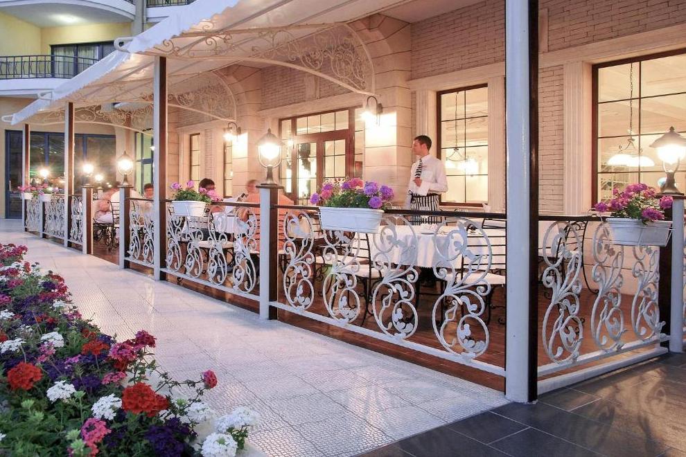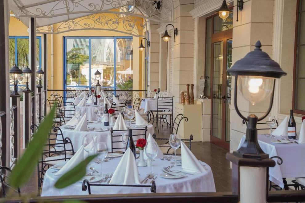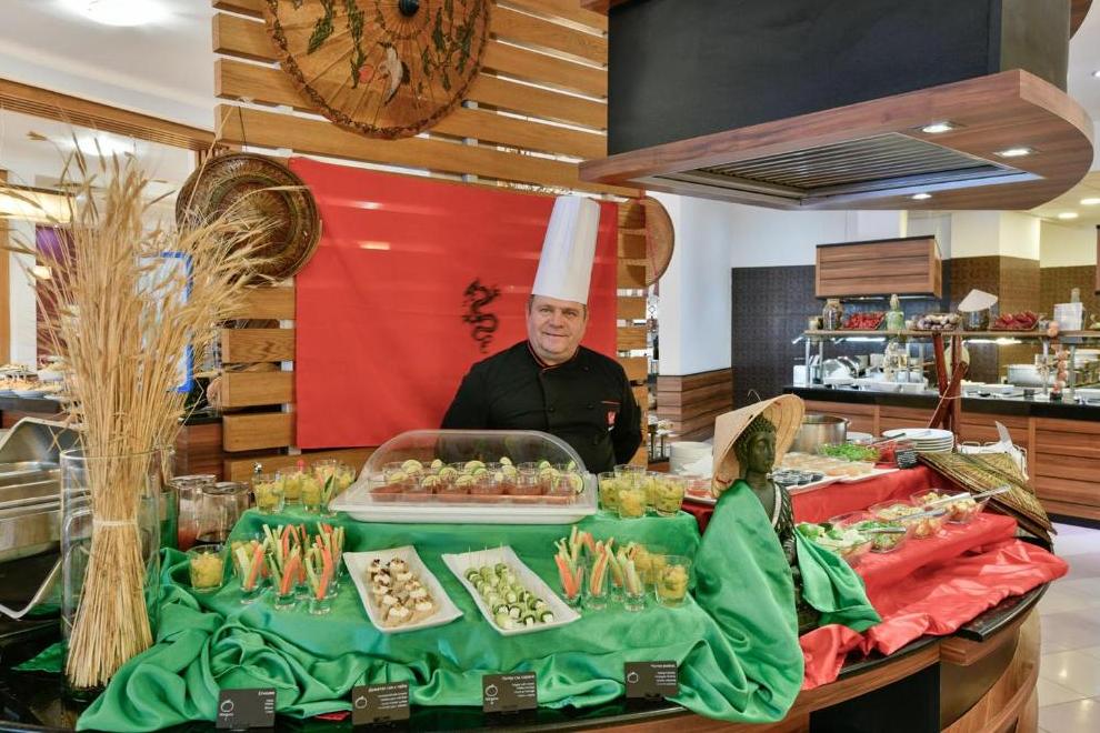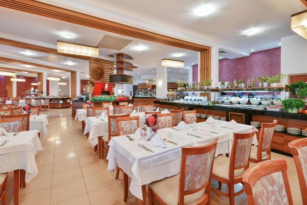 Основен ресторант "Арабела" с просторна зала с открита тераса, с гледка към басейна. Бюфет за закуска, обяд и вечеря. Кулинарни тематични вечери - 2 пъти в седмицата. Спак ресторант, разположен е в горната, по-уединена част на хотелския комплекс в близост до по-малкия открит басейн. Ястията се предлагат на слънчевата тераса на ресторанта. Български ала карт ресторант "Хоро", разположен извън основната сграда на хотела, в близост до "тихия" басейн. Гостите са посрещнати в атмосфера и стил на типична българска къща. Отворен за вечеря. Азиатски а`ла карт ресторант "Ханами", с модерно обзавеждане и дизайн, притежаващ собствен стил и чар. Отворен за вечеря. Италиански а`ла карт ресторант "Прего", елегантен бял салон, външна тераса с гледка към басейна и сцената. Отворен за вечеря. Лоби бар, Бар салон, Грифид сладкарница.