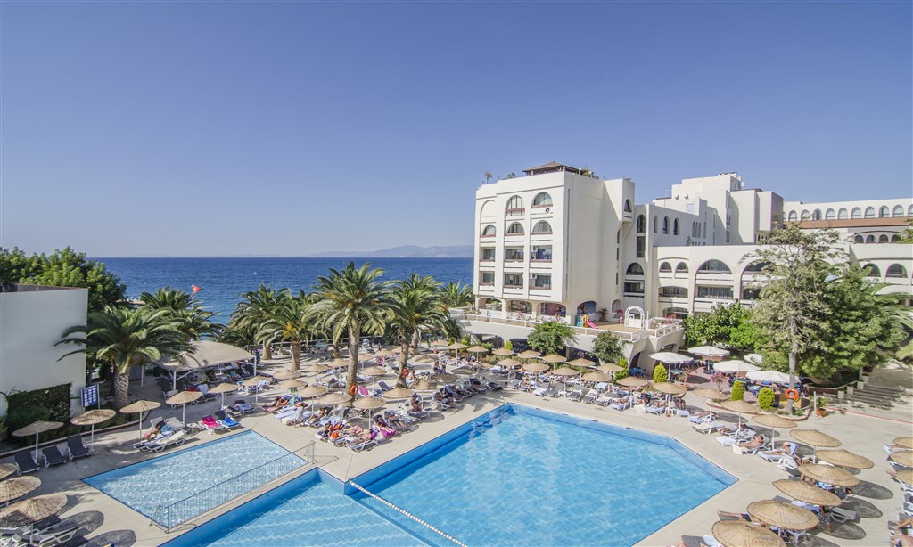Описание Местоположение: Imbat Hotel се намира на 75 км от летище Аднан Мендерес, на 3 км от центъра на Кушадасъ, на брега на морето. Настаняване: Imbat Hotel разполага с общо 310 стаи за гости, разположени в два 5-етажни, три 4-етажни и два 3-етажни корпуса. Всички стаи са оборудвани с климатик, TV, телефон, мини бар, сейф, баня с вана, сешоар, балкон. Стаите се почистват всеки ден, спалното бельо се сменя 3 пъти седмично. Храна и напитки: PImbat Hotel разполага с 1 основен ресторант с открита и закрита секции, 1 А'ла карт ресторант с италианска кухня, 6 бара - лоби бар, снек бар, Santi кафе бар, диско бар, бар на тераса, Orient corner бар. Удобства и забавления: Imbat Hotel предлага възможности за отдих и развлечения на 1 открит плувен басейн с детска секция, стаи за масаж, турска баня, сауна, фитнес зала, тенис корт (в Blue Sky Hotel), дискотека, детска площадка. Предлага възможност за практикуването на водни спортове, аеробика, билярд, тенис на маса, дартс. Wi-Fi интернет е наличен в публичните зони на хотела без допълнително заплащане. Хотелът разполага с безплатен частен паркинг. Плаж: Imbat Hotel се намира на собствен пясъчен плаж.Чадъри, шезлонги и плажни кърпи при басейна и на плажа - безплатно.