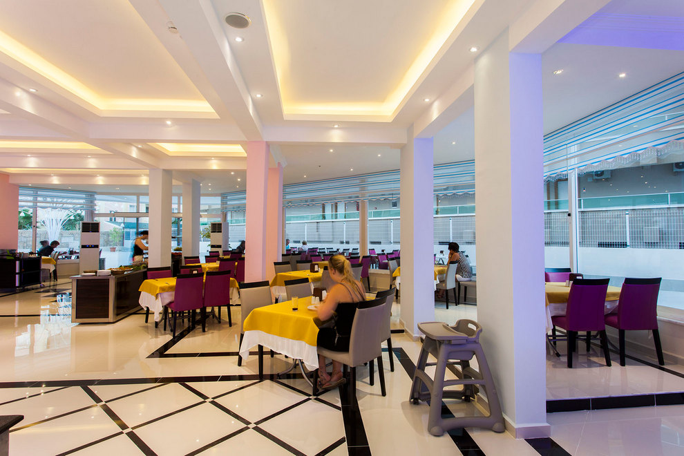 Основен и а`ла карт ресторант. All Inclusive изхранването включва закуска, обяд и вечеря на блок маса, междинни закуски и неограничена консумация на местни алкохолни и безалкохолни напитки между 10:00 ч. и 22:00 ч.