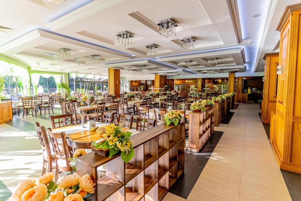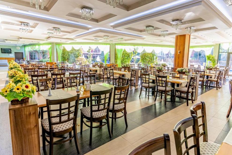 Хотелът работи изцяло на системата "ол инклузив" и предлага разнообразие от храни и напитки. Ресторантът на хотела е с капацитет от 370 места вътре и 150 места на сенчеста тераса за топлите летни вечери, с приятна гледка към осветения открит плувен басейн. Кафе-барът, разполагащ с тераса до басейна (капацитет 30 места), е идеалното място за освежаваща напитка.