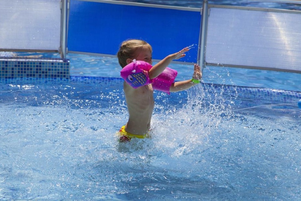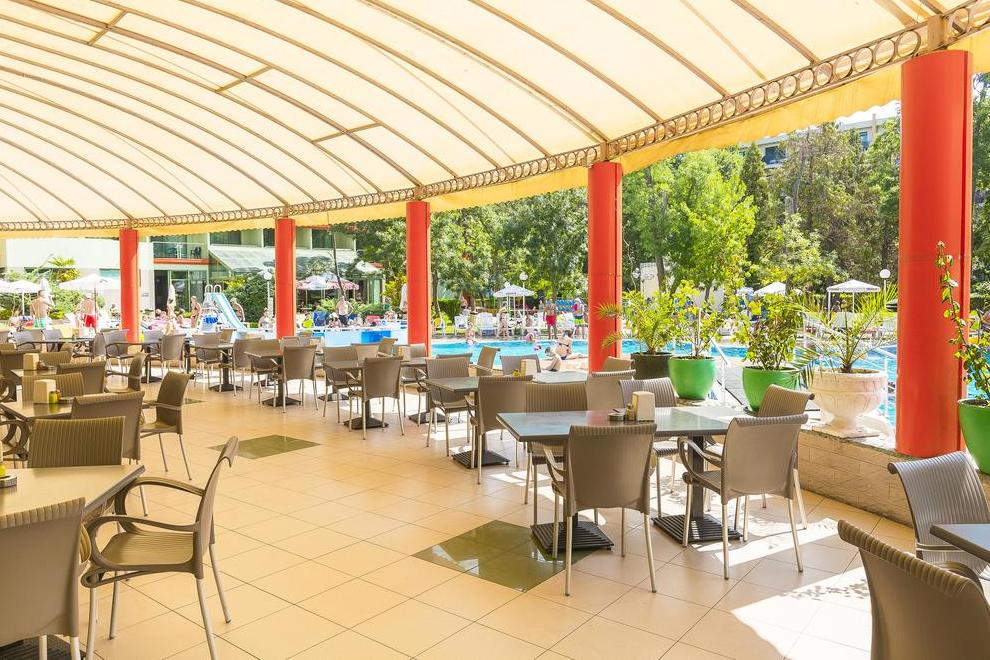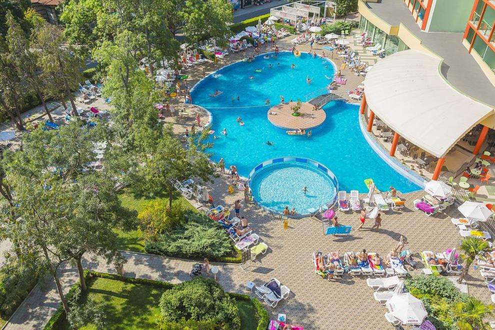 Хотелът е само на 200 м от плажа. За удобството на гостите си предлага също външен басейн с детска секция и мини водна пързалка. Шезлонги и чадъри край басейна. Има и тераса за слънчеви бани.