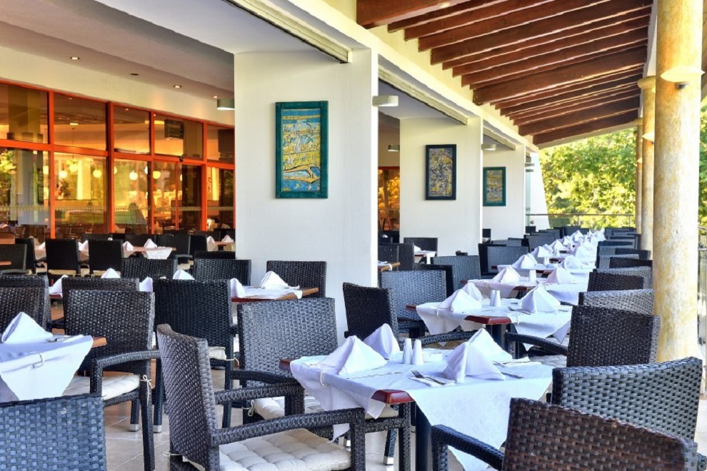 Закуска, обяд или вечеря в ресторанта на хотела. Разнообразни сирена и страхотни салати, приготвени с пресни продукти, отгледани с много любов в градините на Албена – фермата Еко Агро. Тематични вечери и барбекю в градината. На разположение на гостите са лоби бар, пул бар, лаундж бар. През целия сезон гостите могат да посетят един от a-la-card ресторантите, включени в програмата Dine Around.