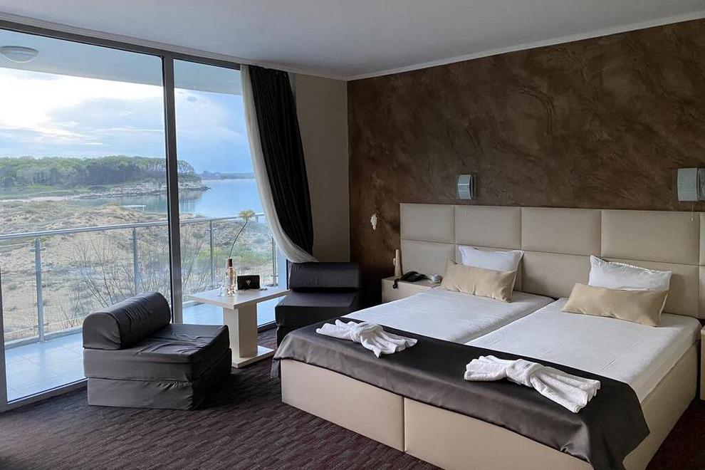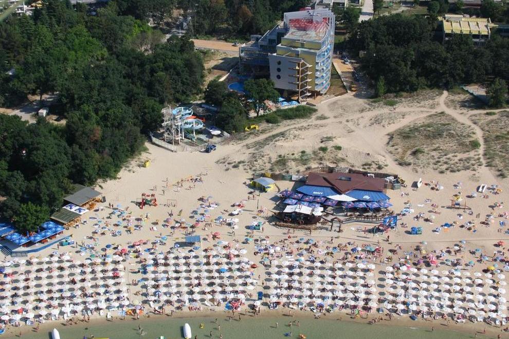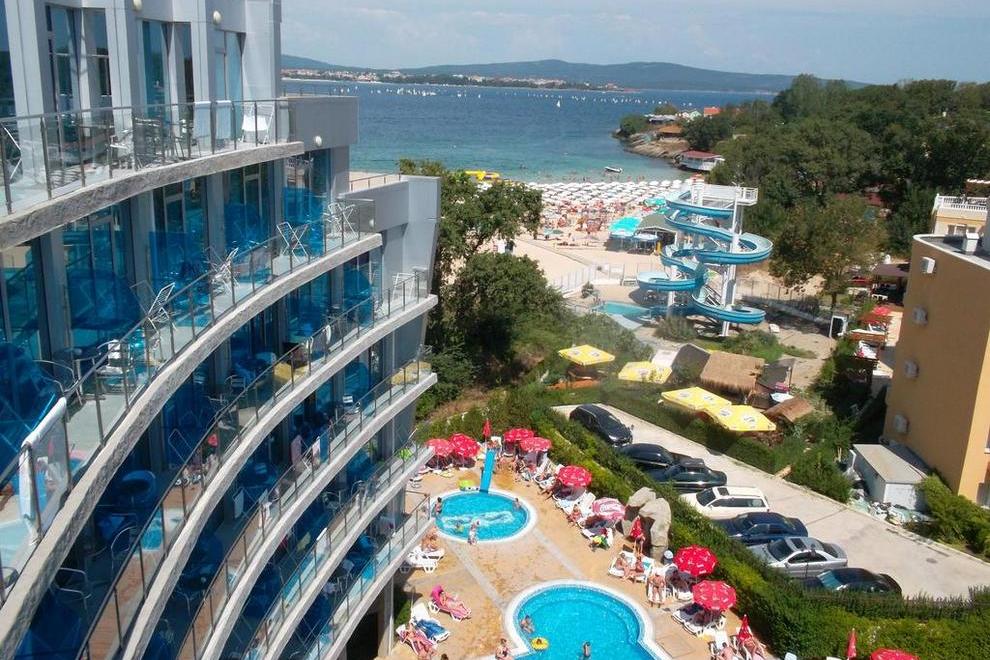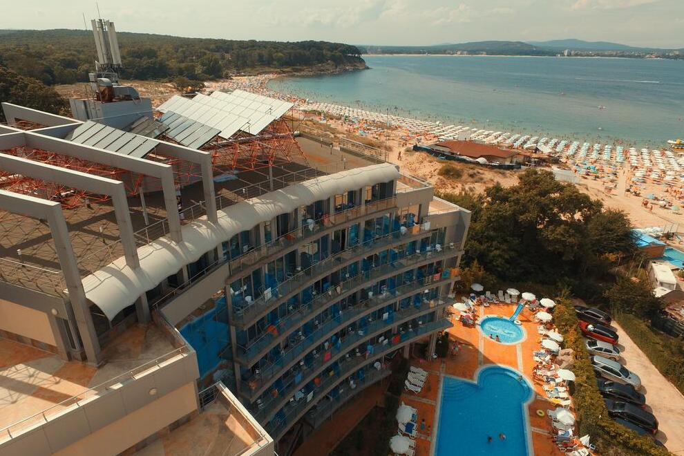 Хотелът се намира на първа линия, предлага удобството на плувен басейн и тераса за слънчеви бани.