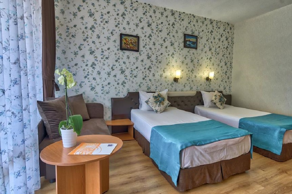 Анимация за деца и възрастни 6 пъти седмично (мини дискотека, aqua zumba, игри, шах, водна топка, дартс, пинг-понг) през юли и август. Сауна, масажи. За децата детска площадка, детски басейн, детски клуб за деца от 4 до 12 год., детско столче в ресторанта. Денонощно медицинско обслужване. Безплатен Wi-Fi на Лоби бара.