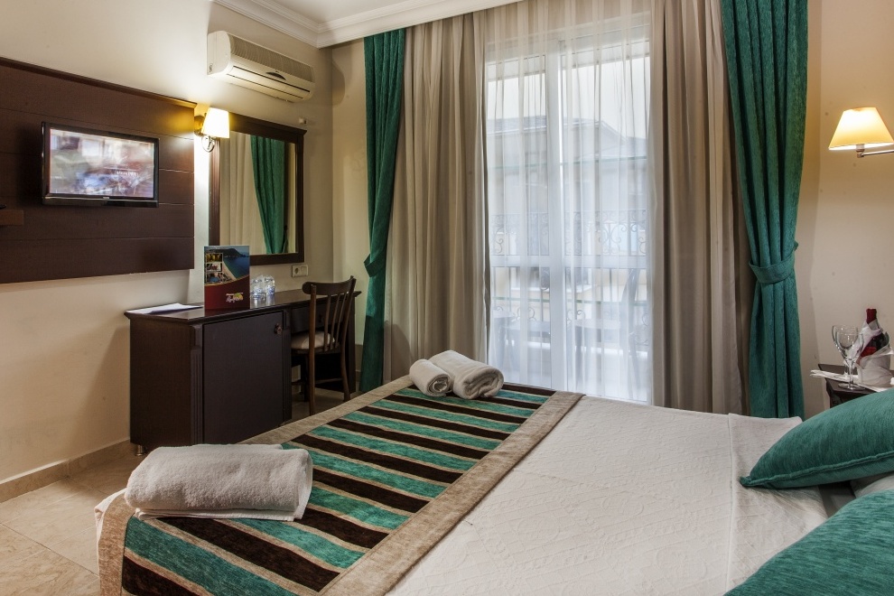 Хотелът разполага общо със 188 стаи, от които 135 стандартни стаи и 53 фамилни. Всички стаи са оборудвани с климатик, сателитна телевизия, телефон, баня с душ, сешоар, минибар (платено), сейф (платено), балкон. Почистване на стаите - всеки ден, смяна на бельото и кърпите - 3 пъти в седмицата.