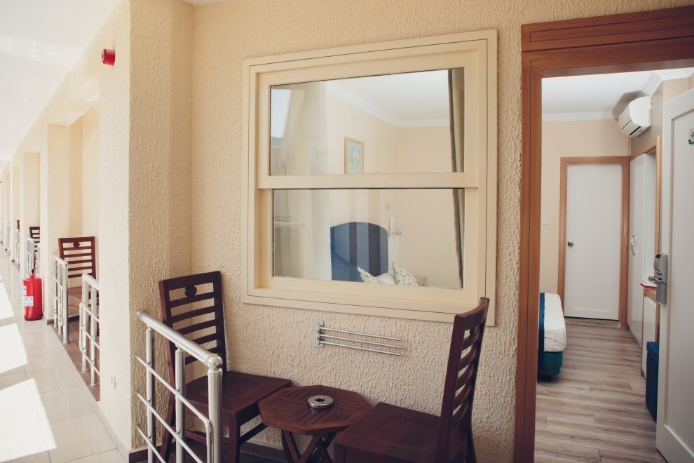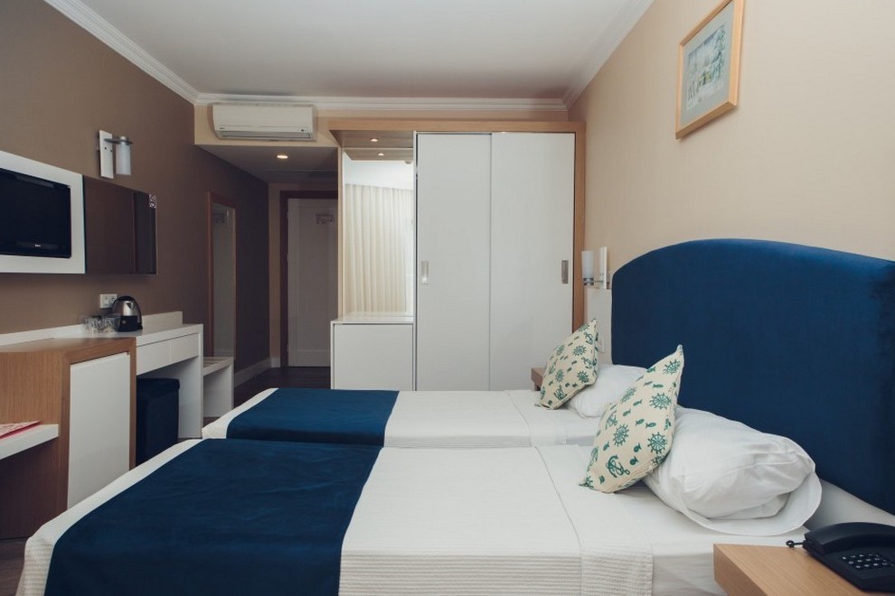 Хотелът се състои от две четириетажни сгради (има асансьори), в които са разпределени 233 климатизирани стаи. Те са оборудвани с телефон, телевизор, минибар, сейф, баня, сешоар, балкон. Стаите се почистват ежедневно, спалното бельо се сменя три пъти седмично.