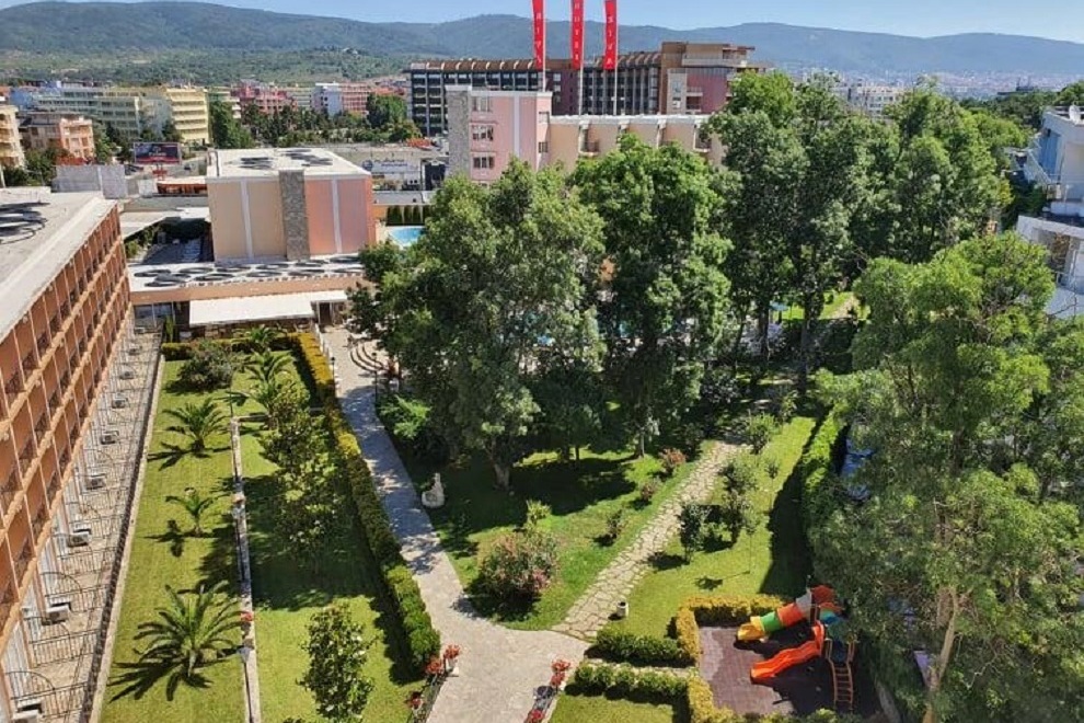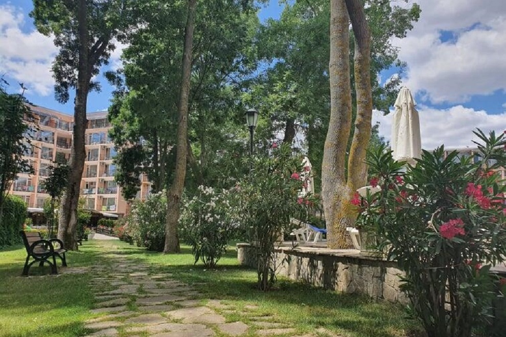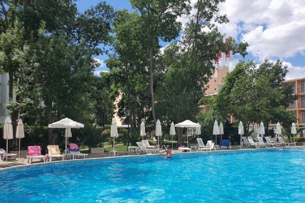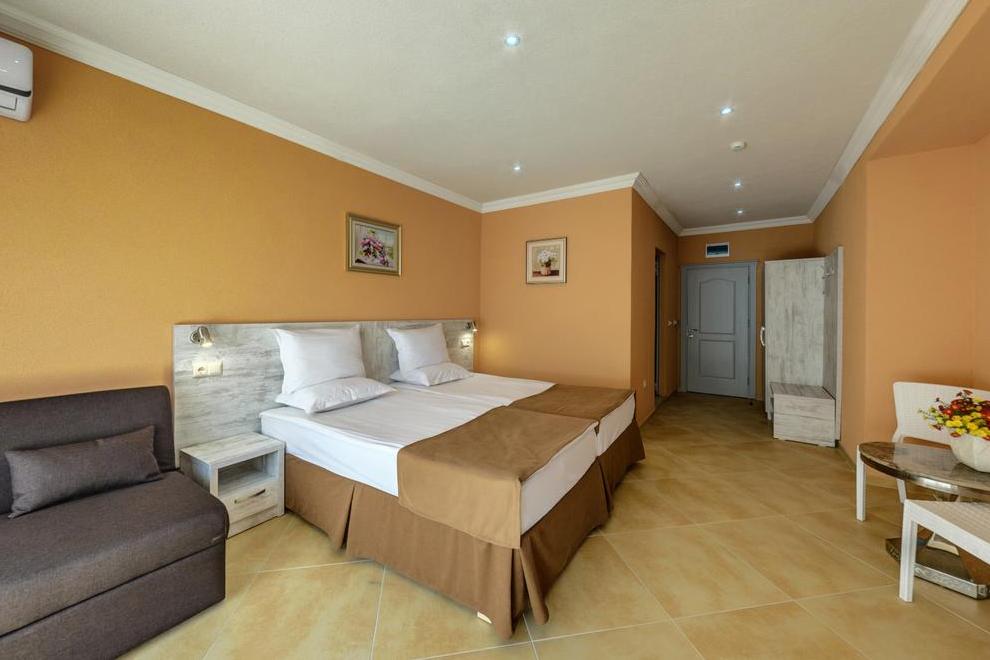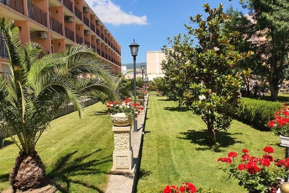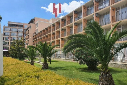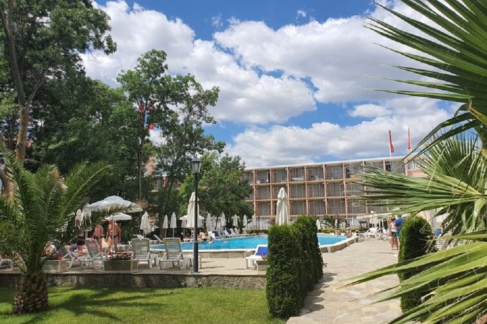 Плажът е наблизо, а хотелът предлага удобството на открит басейн и тераса за слънчеви бани.