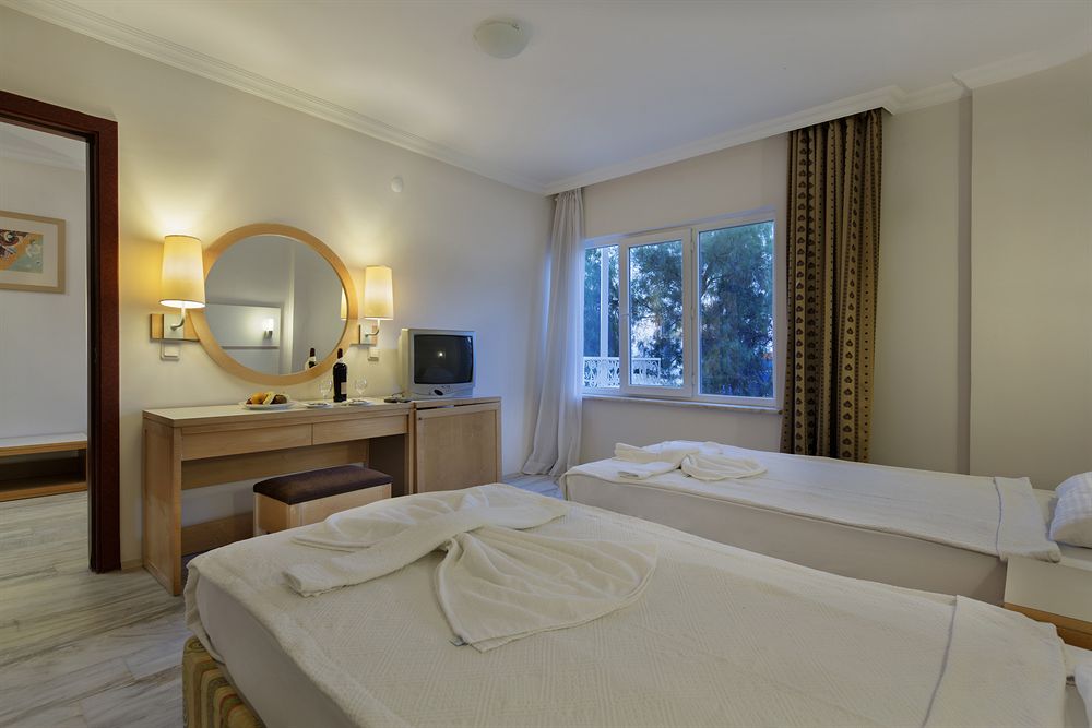 Описание Местоположение Разположен в центъра на Конаклъ, този комплекс се намира на 8 километра от Sealanya Dolphinpark. Настаняване Красивите 267 стаи в хотел Larissa Holiday Beach Club са оборудвани с мини бар, климатик, индивидуален сейф, вътрешен двор и хладилник. Хотел Larissa Holiday Beach Club предлага стаи с изглед към морето. Баните са оборудвани с душ, сешоар и безплатни тоалетни принадлежности. Храна и напитки Два ресторанта. Гостите могат да се отпуснат в нощния бар, предлагащ освежаващи напитки. Удобства, спорт и забавления Можете да се възползвате от СПА услугите, които предлага хотелът. Също така има възможност за занимания с водни спортове, гмуркане, сауна, фитнес зала. За децата - детски басейн, детски клуб, игрална зала. Плаж Хотелът има собствен плаж и два откри и басейна. Бар при басейна. Плажни чадъри, дюшеци и кърпи.