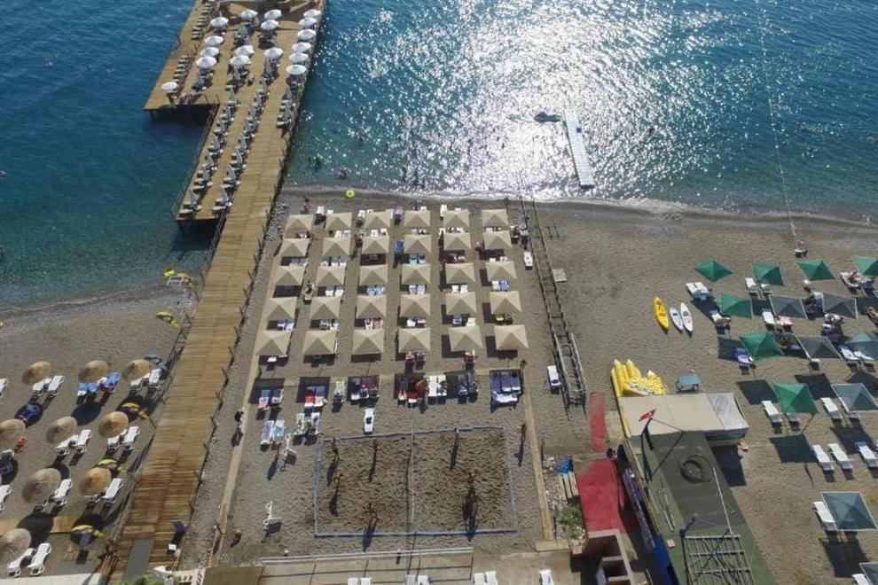 На 200 м от хотела се намира обществен пясъчно-чакълест плаж. Между плажа и хотела има път, но няма подземен проход. На разположение на гостите в хотела има един открит басейн с една водна пързалка.