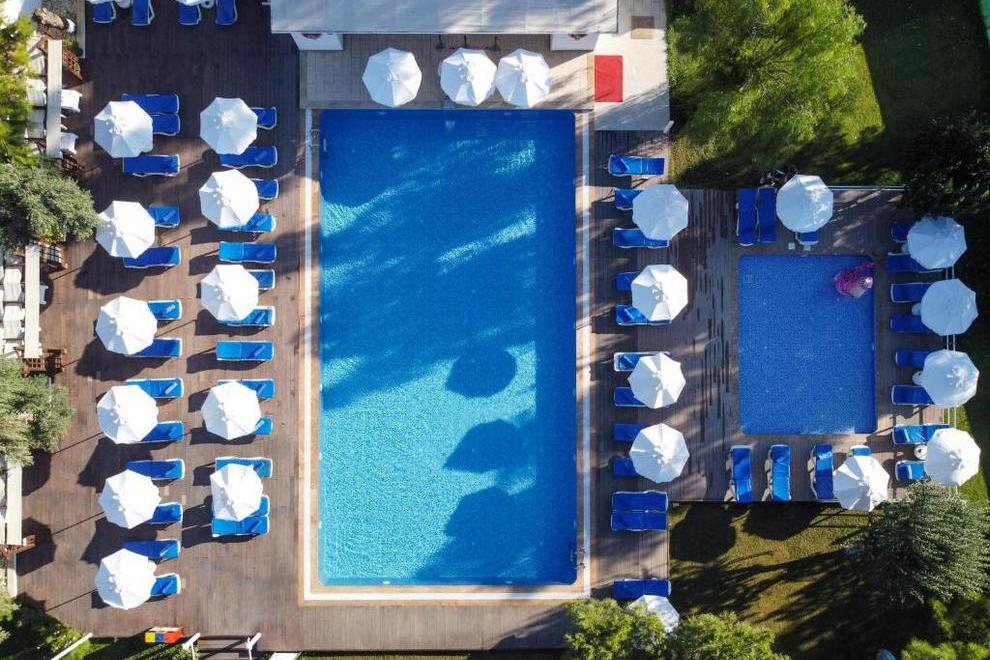Хотелът е на първа линия и разполага със собствен пясъчно-чакълест плаж, награден със Син флаг. Има открит басейн и детски басейн.