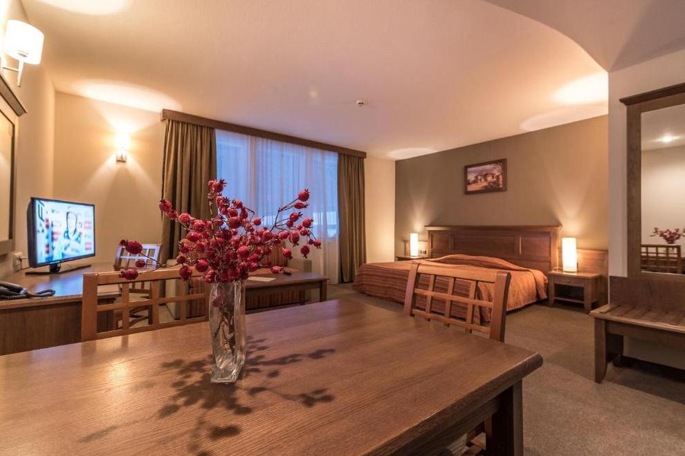 КОЛЕДНА ПРАЗНИЧНА ВЕЧЕРЯ: 100 лв. за възрастен; 50 лв. за дете от 4 до 11,99 години. НОВОГОДИШНА ГАЛА ВЕЧЕРЯ: 160 лв. за възрастен; 80 лв. за дете от 4 до 11,99 години. Хотелът има основен ресторант с капацитет до 350 места, в който гостите могат да се насладят на европейска и българска кухня. В хотела има тематичен ресторант с капацитет до 100 места. Лоби барът е с две камини и предлага уютна атмосфера, селектирани вина и разнообразни напитки и коктейли.