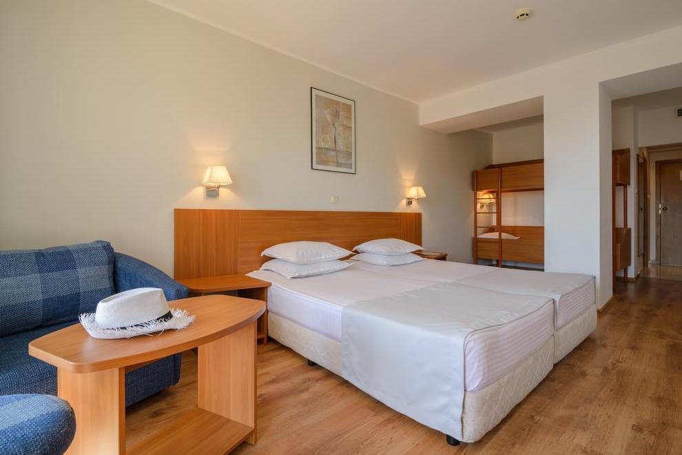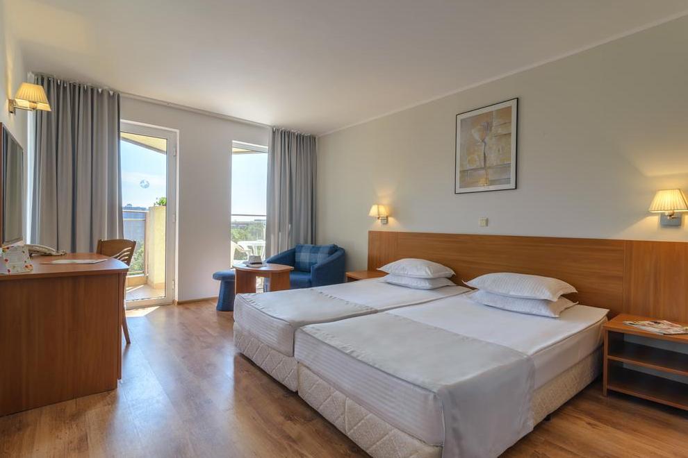 Хотелът има сграда на 6 етажа, централна климатизация и разполага с 242 хотелски единици, включително: 162 двойни, 10 единични, 20 фамилни стаи (със свързваща врата), 20 стаи младши суити, оборудвани с 2 допълнителни легла и 10 апартамента с една стандартна спалня . Те са удобни и просторни, с балкон, модерно оборудвани с мини-бар, телефон, телевизор и климатик. Всички бани разполагат с душ и сешоар.