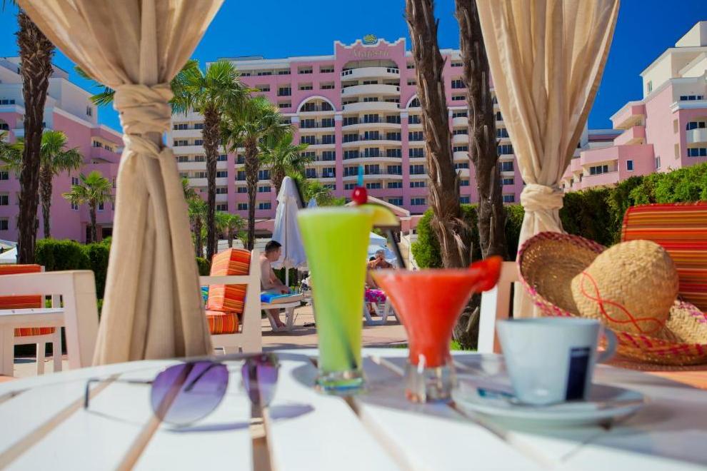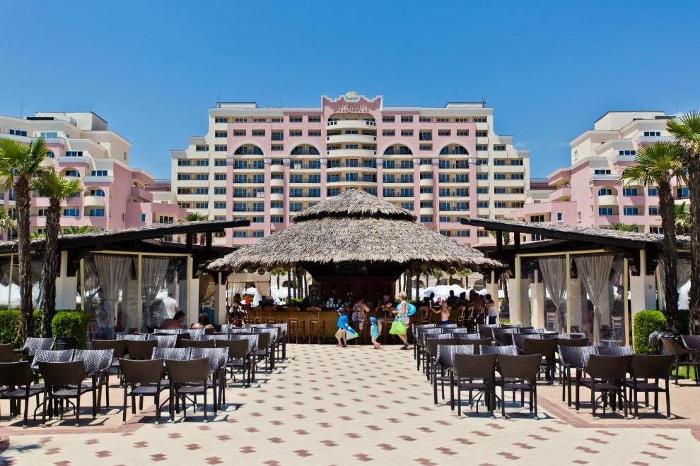 Основният ресторант разполага и с открита тераса – точно пред основния ресторант и до басейна. Италианският ресторант се намира точно до ресторант ASIA. Азиатският Ресторант се намира до лоби бара. Снек барът се намира пред нощния клуб. Сладкарницата се намира точно до Лоби бара и предлага вкусен сладолед и десерти, кафе и освежаващи напитки. Здравословният корнер се намира между Лоби бара и Кафетерията и предлага от здравословни сандвичи до фантастични торти. Лоби барът работи 24/7 и е разделен на две тематични зони – една много стилна и луксозна вътрешна, и просторна тераса. Бар басейнът е проектиран в уникален карибски стил и е разположен между двата основни външни басейна. Нощният клуб е изграден в театрален стил и е оборудван със сцена и дансинг. Професионално обучен екип от аниматори на комплекса, както и различни външни танцови групи организират различни развлекателни, музикални, танцови и вариететни програми.