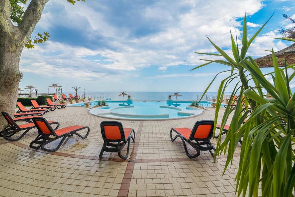 Хотелът се намира на първа линия, плажната ивица е с фин златист пясък, а в „ол-инклузив" услугата на всяка стая са включени и чадър с два шезлонга. Външният басейн е разположен на слънчева тераса с изглед към морето. Басейнът разполага и с детска секция. Хотелът има и красива тераса за слънчеви бани.