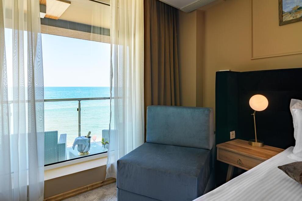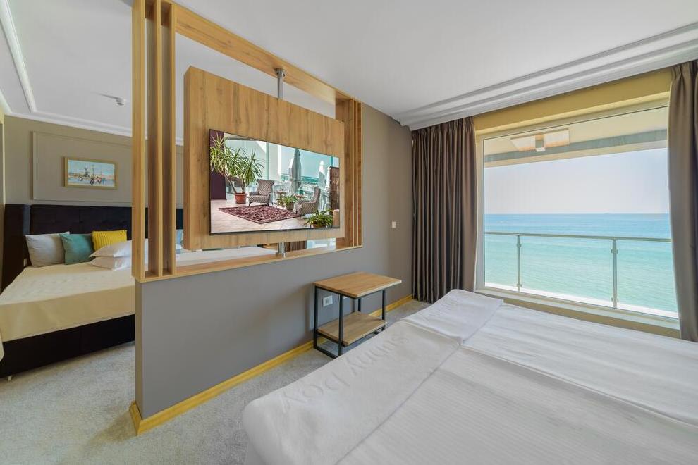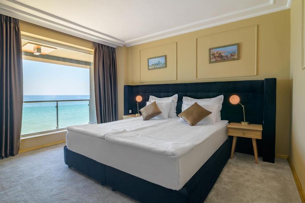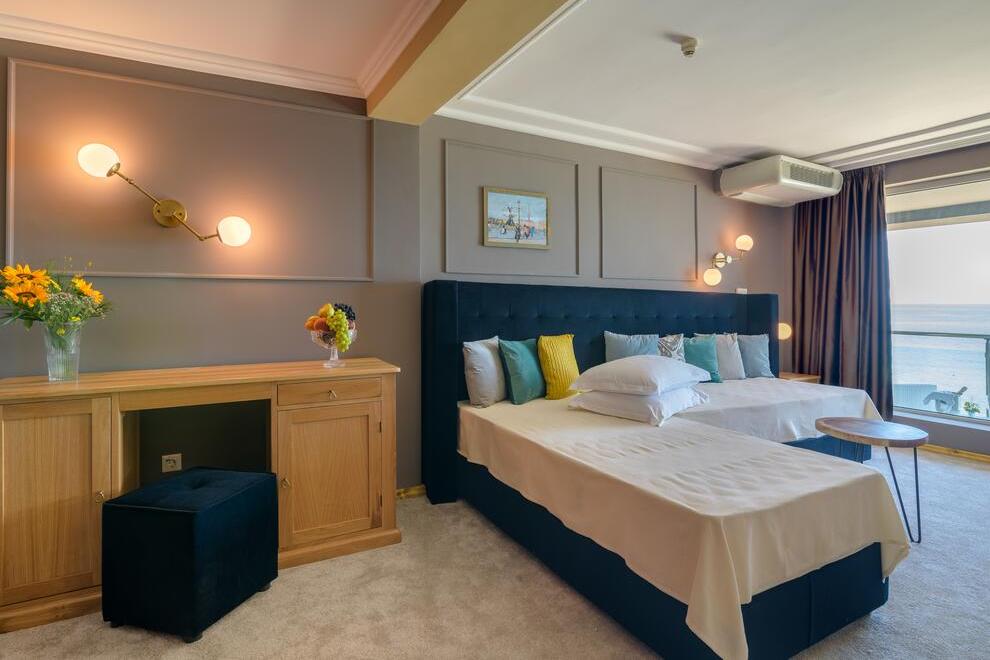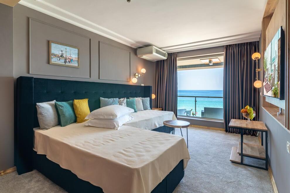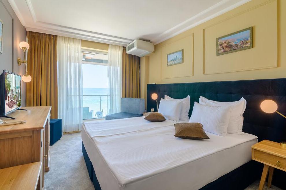 Хотелът е една шестетажна сграда с асансьори и посреща гостите си в 187 Двойни стаи, с изглед към морето и парка (12 от тях със свързваща врата) и 16 фамилни стаи с морски изглед, подходящи за семейства с деца. Всички стаи са комфортни, стилно и модерно обзаведени и с мебелирани тераси. Всяка стая разполага с двойно легло с възможност за отделяне на две единични легла по желание на госта. Допълнителното легло е разтегателен фотьойл с размери 70х170 см. Подходящ за настаняване на деца. Стаите имат "black out" завеси, баня с душ, сешоар, мини бар, телефон, безплатен Wi-Fi, LCD TV, сателитна телевизия, хавлии и тоалетни принадлежности.