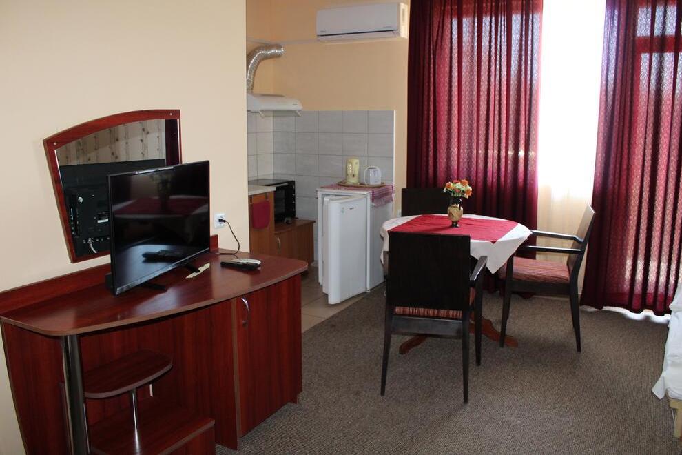 Стаите имат балкон и самостоятелна баня с душ. Оборудвани са с термокана и хладилник, а апартаментите разполагат с хол и кухненски бокс, телевизор с кабелни канали.