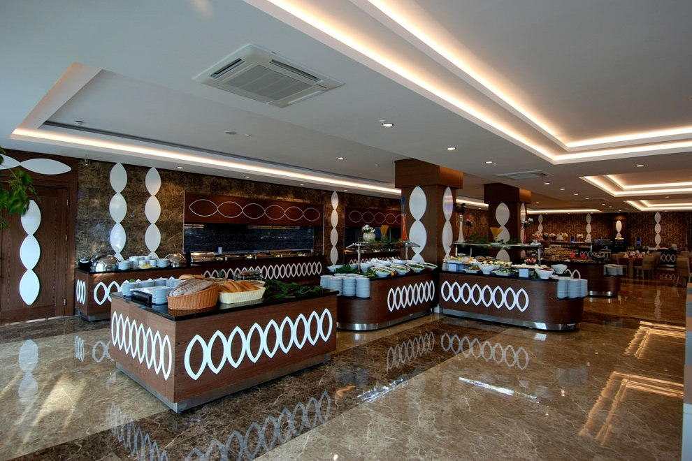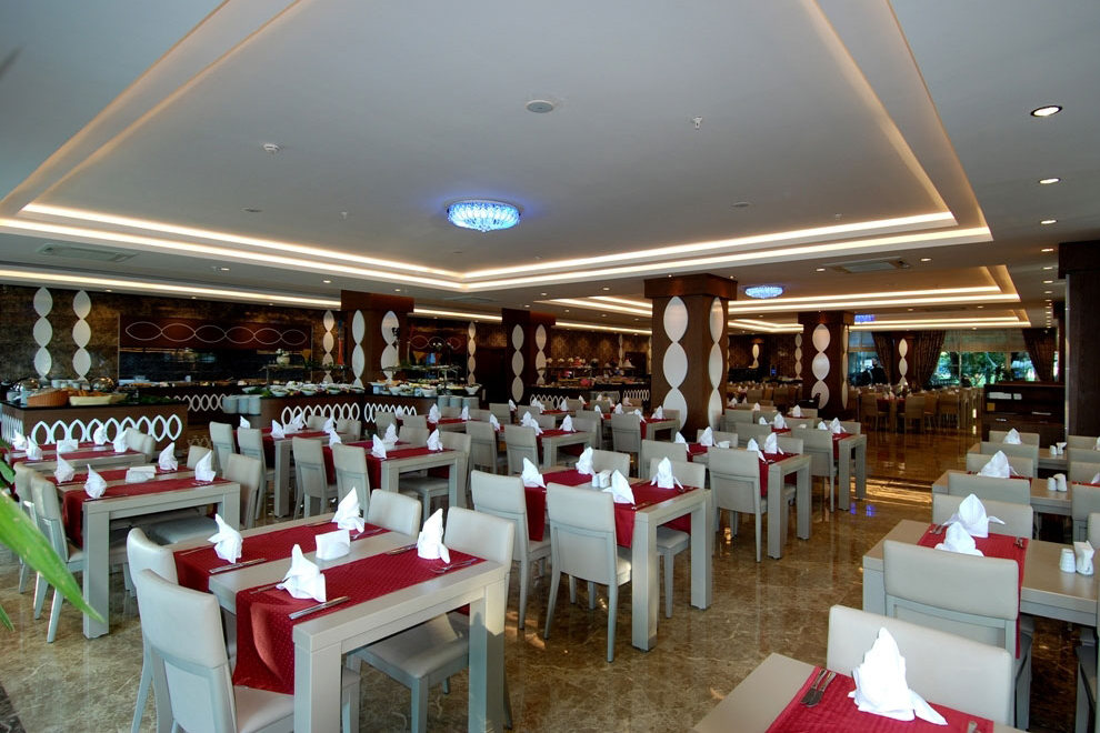 Хотелът разполага с основен ресторант и два а`ла карт ресторанта - турски и рибен. Има 5 бара.