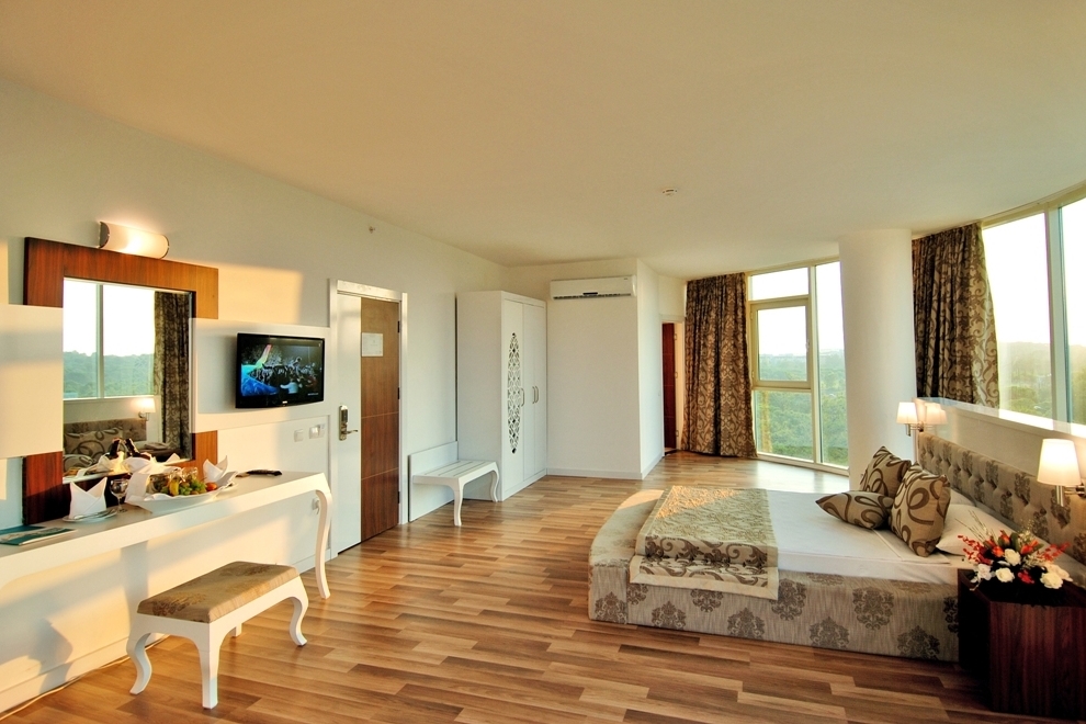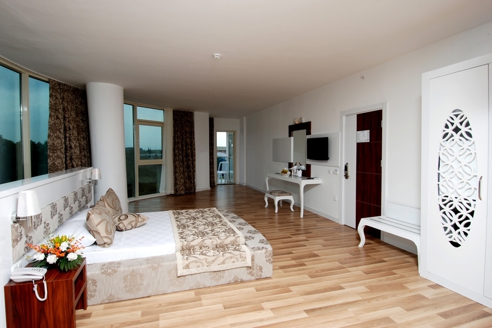 Хотелът се състои от основна 5-етажна сграда (два асансьора) и пет едноетажни бунгала. Хотелът посреща гостите си в 273 климатизирани стаи с изглед към басейна или градината. В стаите има сателитна телевизия, минибар, телефон с директно избиране, душ, сешоар, сейф (срещу заплащане), балкон (с изключение на икономични стаи), под - паркет. Ежедневно почистване на стаите. Спалното бельо се сменя три пъти седмично.