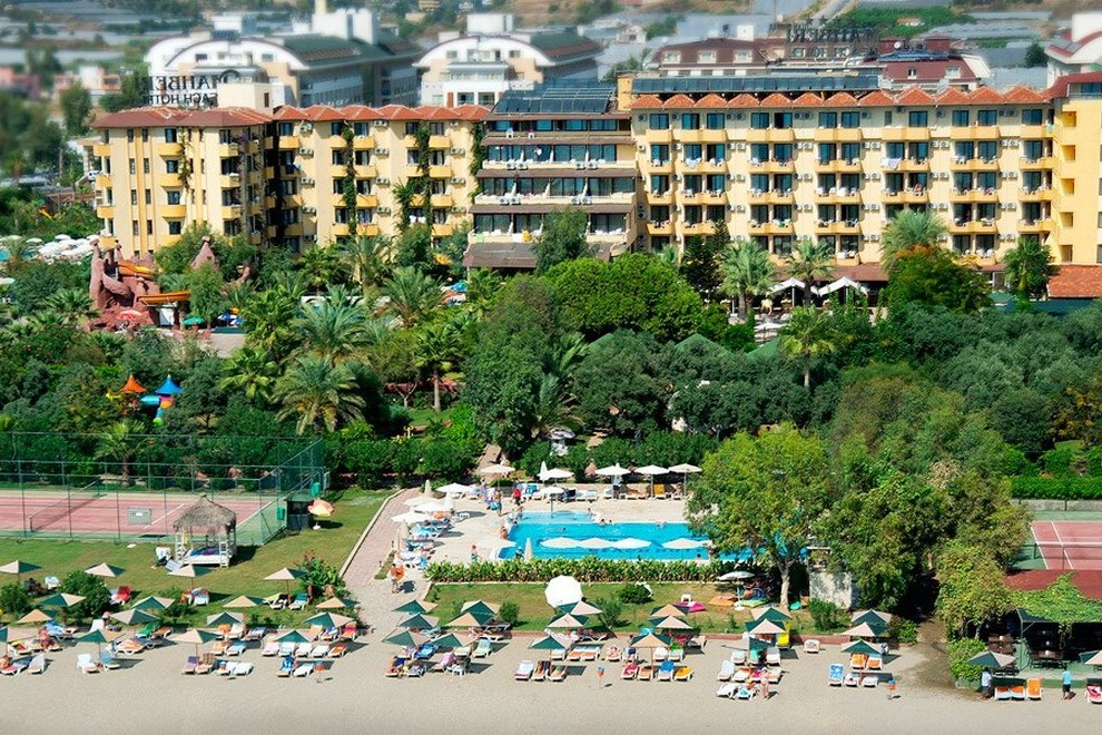 Хотелът се намира на 100 м от плажа, в село Конаклъ, на 10 км от Алания, на 58 км. Летище Анталия е 110 км, Сиде е на 50 км, Търговският център е на 500 метра. Последна реновация е правена през 2019 г.