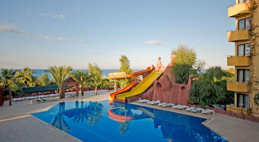 Плажът на хотела е на 100 м. Хотелът разполага с 3 големи открити басейна, 2 детски басейна, 1 закрит басейн, 3 пързалки.