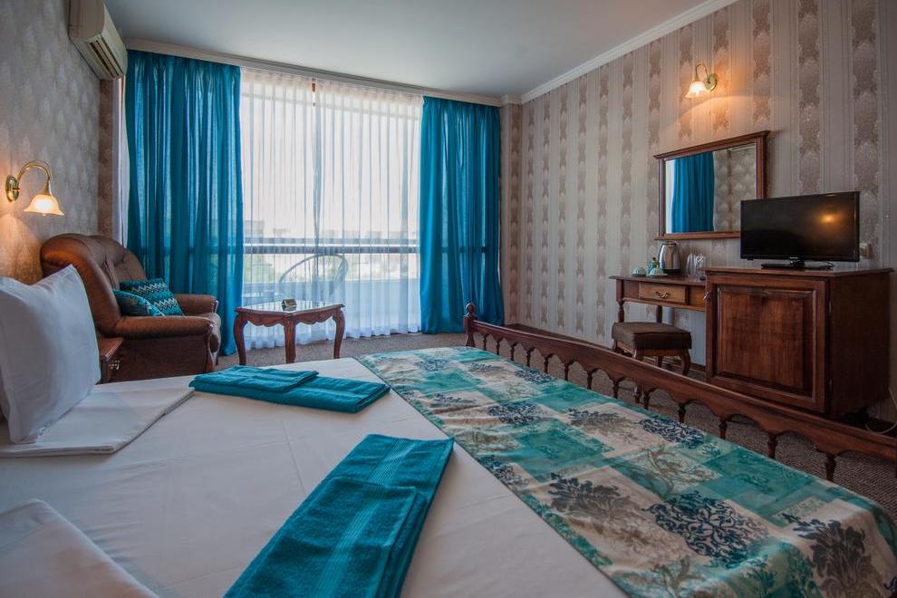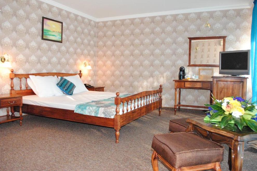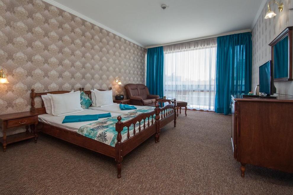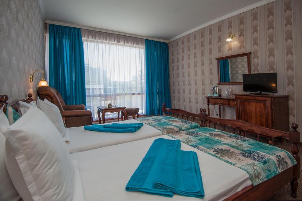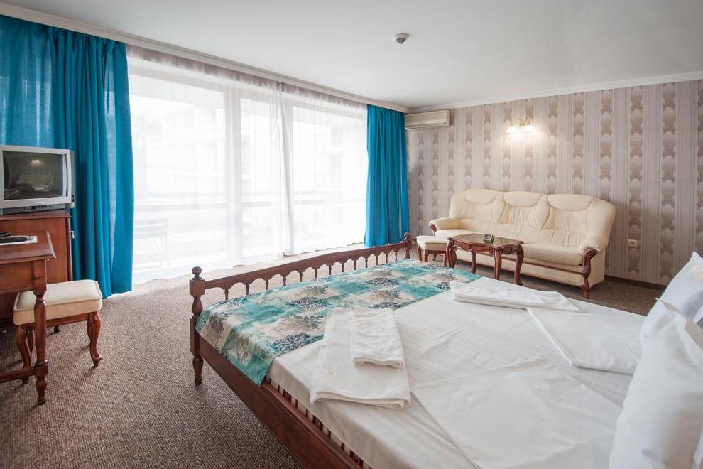 Хотелът посреща своите гости в 120 стаи (58 от тях с две легла и 62 със спалня), 8 апартамента със спалня и хол (всяка стая има самостоятелен санитарен възел), 2 VIP апартамента с по две спални и хол. Всички помещения са шумоизолирани и луксозно обзаведени с мебели от естествени материали. Вълнен мокет покрива пода както в стаите, така и в коридорите на хотела. Всички стаи са климатизирани и имат сателитна телевизия, радио и CD-касетофон, минибар, телефон, баня с ванa и сешоар, тераса.