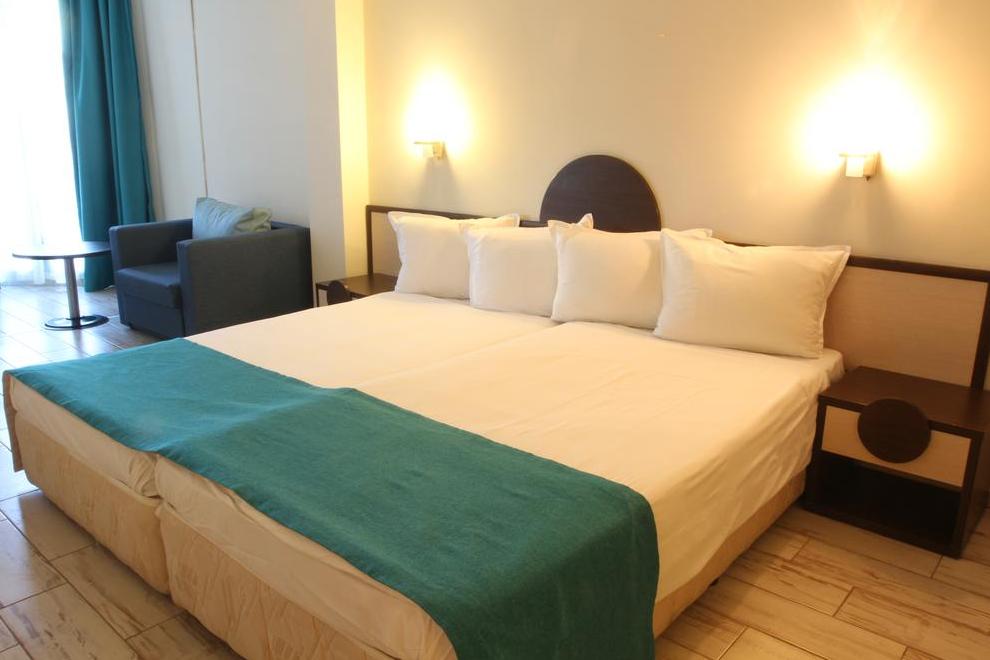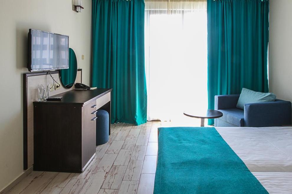 Плажът е на 200 м от хотела, който разполага и с открит плувен басейн с детска секция.