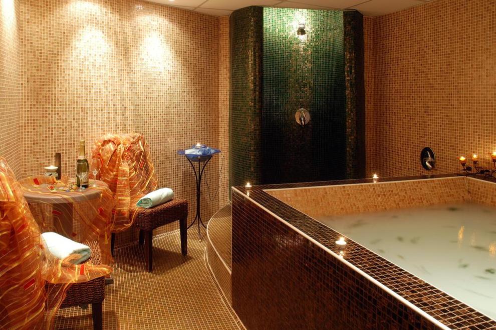 На разположение на гостите са и два големи открити басейна на различни нива, свързани с водни пързалки, обградени от слънчеви тераси с шезлонги, матраци и чадъри, два детски басейна, закрит басейн с детски сектор.