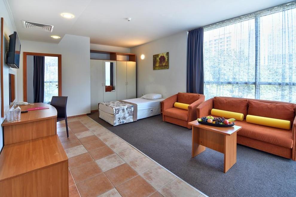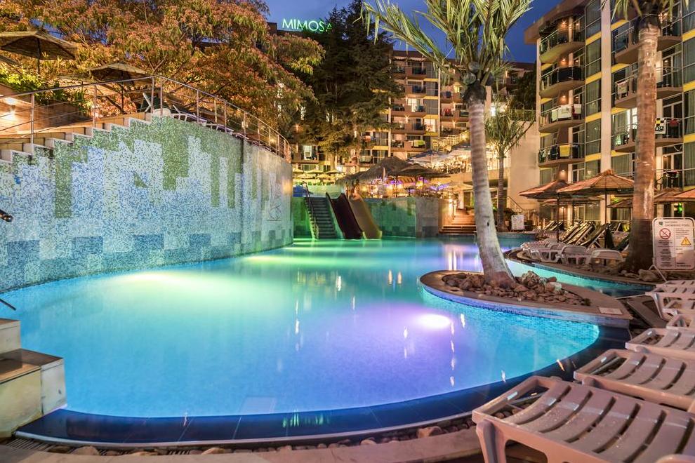 Хотелът разполага с екип от аниматори. Центърът за красота "Мимоза" е оборудван с модерна техника и предлага разнообразни програми. Сцена за шоу програми, СПА и уелнес център. За децата: два отделни басейна и сектор за деца във вътрешния басейн, изцяло обновен детски кът, детска площадка и тематична анимация за деца. Мини диско и безплатна детска градина (за деца между 4-12 год). Детски столчета в ресторанта и бебешки кошари в стаите.
