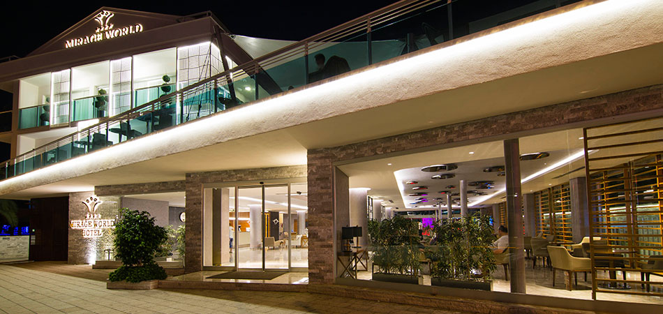 Хотел Mirage World Resort предлага на своите гости: 2 открити басейна (300 и 230 кв.м), водни пързалки, анимация, интернет кафе (срещу заплащане), дискотека (срещу заплащане), обмен на валута, магазини, конферентна зала. Срещу заплащане: масаж, фитнес център, билярд, фризьорски салон, химическо чистене, детегледачка,доктор. За децата: мини-клуб (от 4 до 12 год., 10:00 – 16:00), детски басейн (6 кв.м.), детска площадка, детско креватче, детско столче, детско меню.