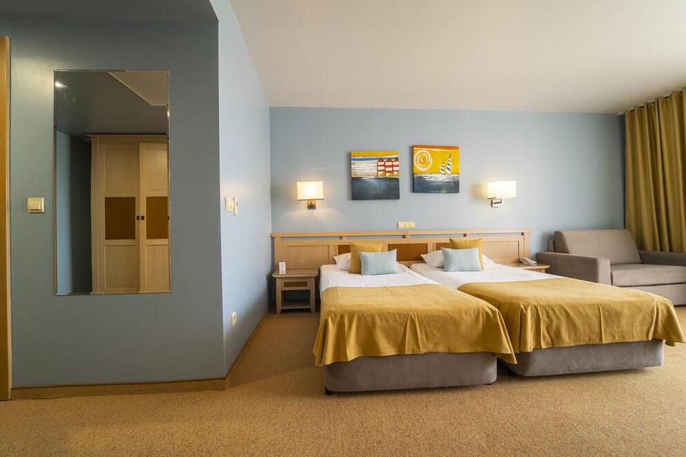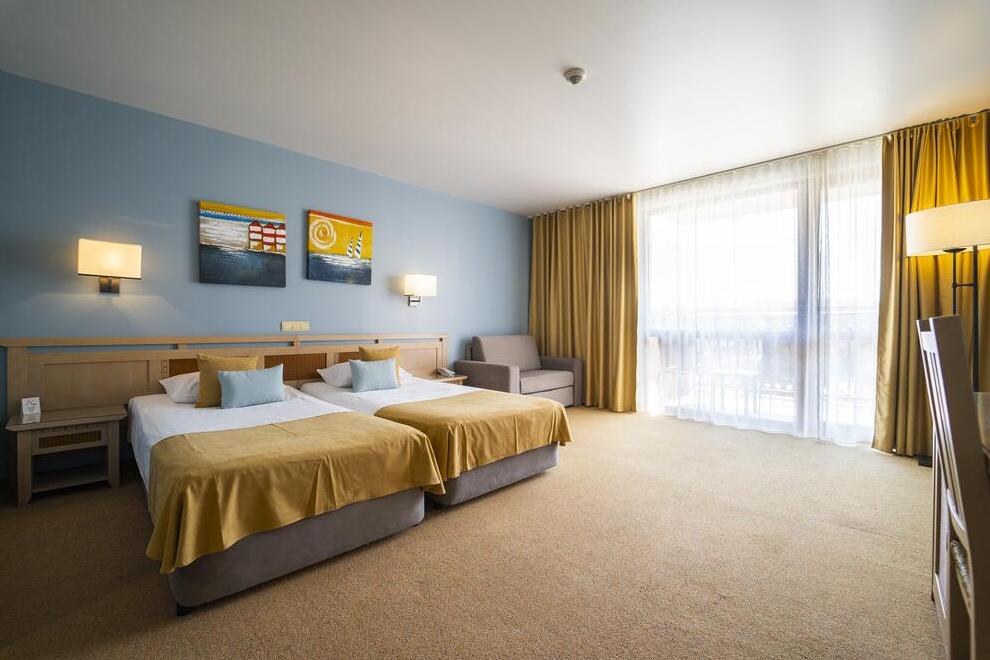 Хотелът посреща гостите си в 411 стандартни двойни стаи , 54 разширени двойни стаи, 10 студия и 25 апартамента. Всяка стая е оборудвана с гардероб, телефон, кабелна телевизия, сейф (срещу допълнително доплащане), диван, централна климатична система, мини-бар, който се зарежда безплатно на ежедневна база с минерална вода, безалкохолни напитки и бира, мокет или плочки (на приземния етаж) на пода, душ и тоалетна, сешоар, балкон или тераса и безплатен Wi-Fi.