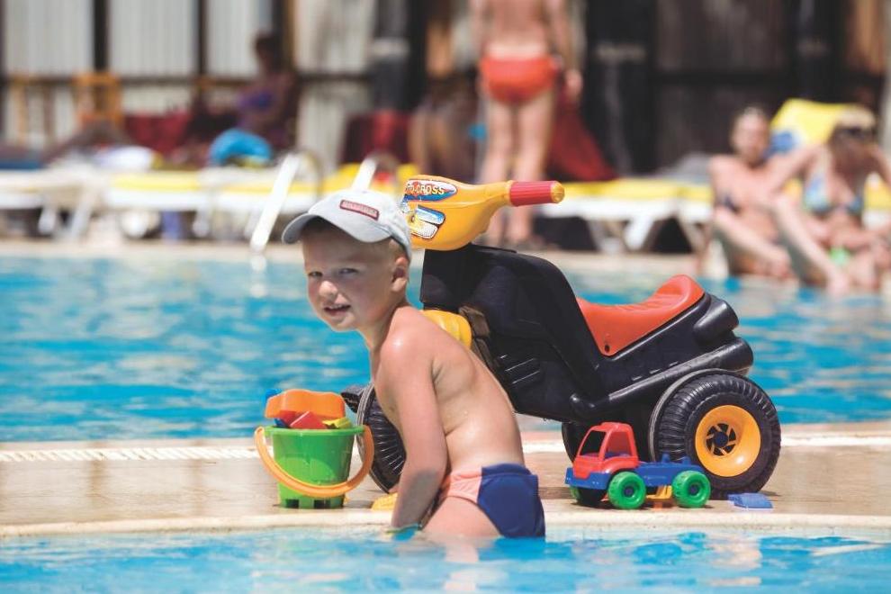 Хотелът има собствен пясъчно-чакълест плаж. На разположение на гостите са и 2 открити басейна с водна пързалка. Бар на плажа (платен). На плажа чадъри, шезлонги, матраци се ползват срещу заплащане, при басейна са безплатни.