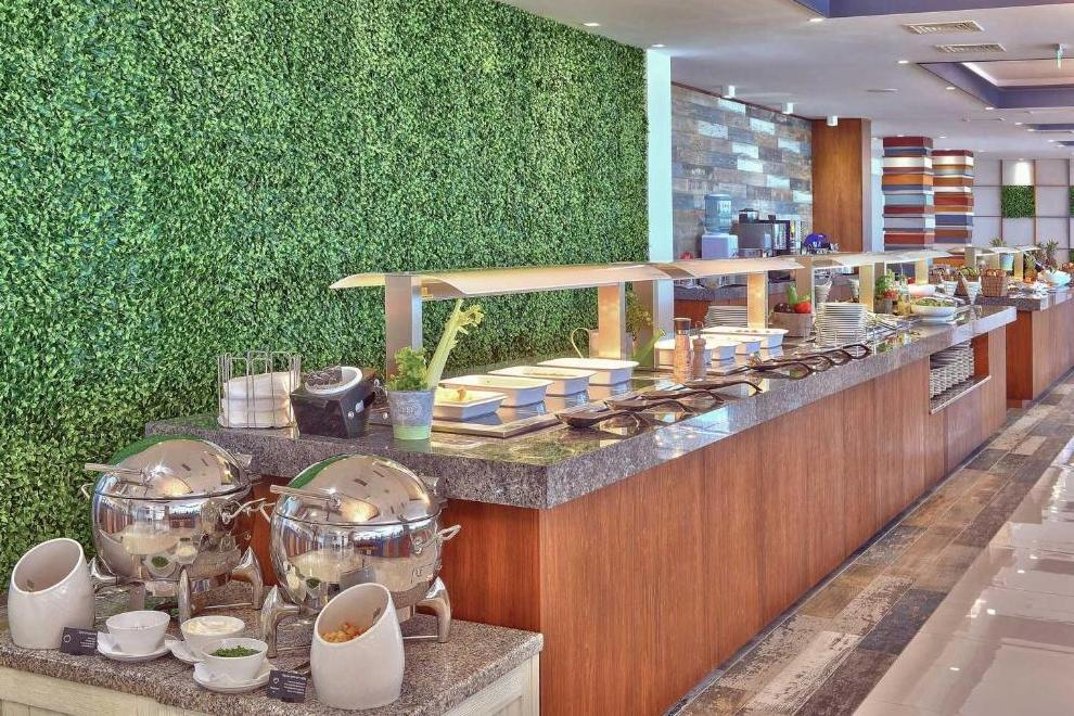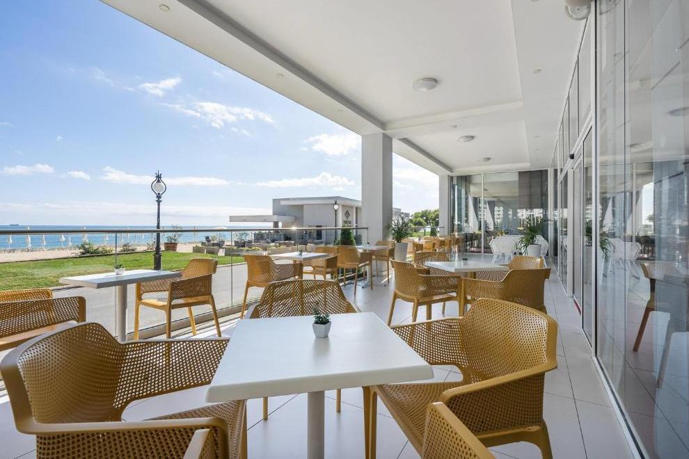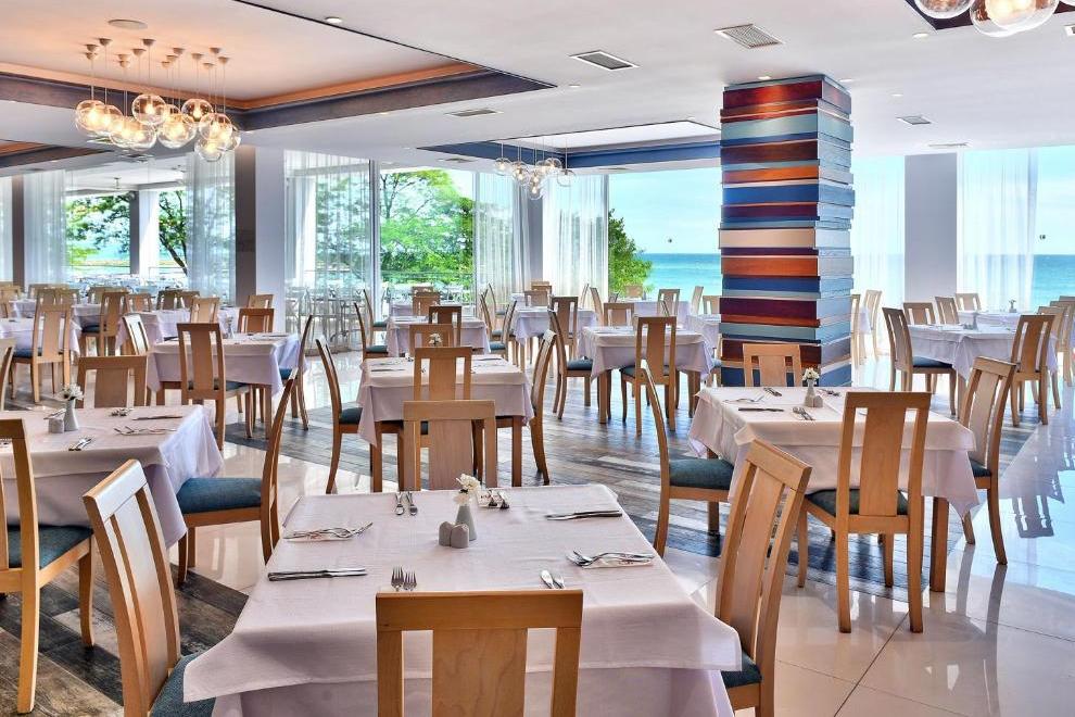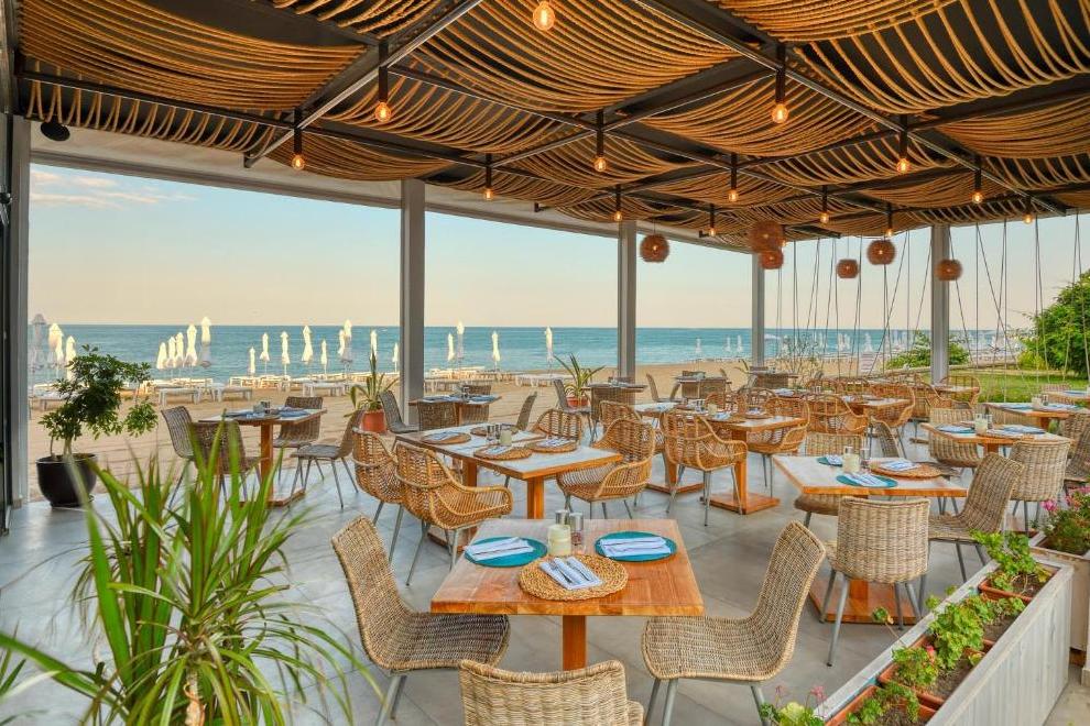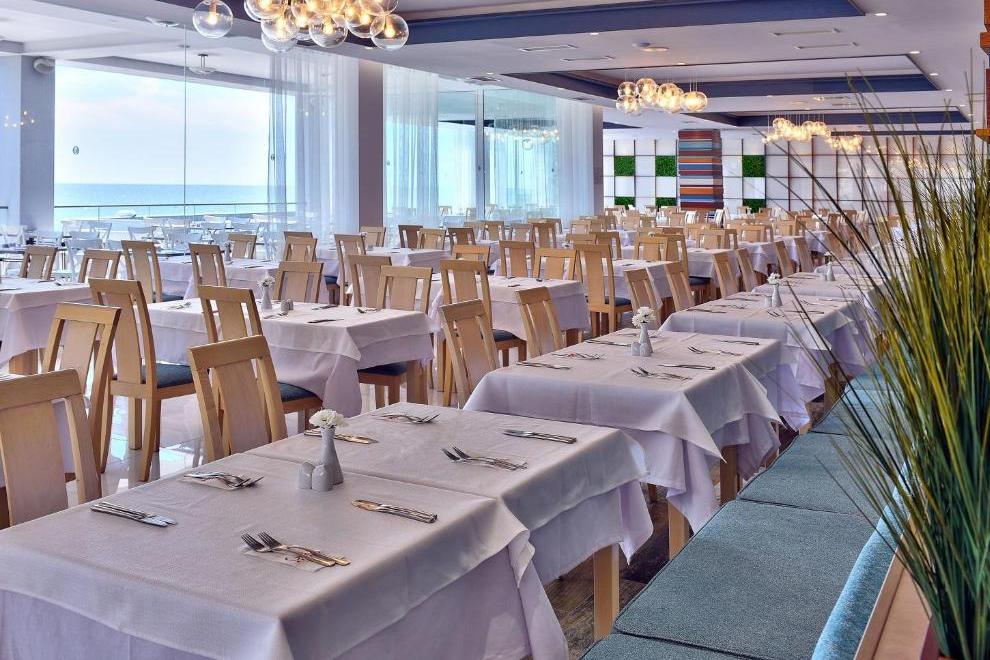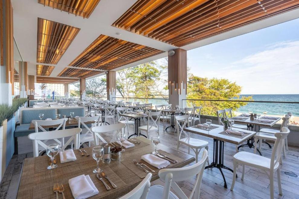 Хотелcът разполага с 3 ресторанта, сладкарница и 4 барa, част от формулата УЛТРА ол инклузив. Основен ресторант с просторна зала с открита тераса към морето. А`ла карт ресторант с 69 места на закрито. Здравословен а`ла карт ресторант с детокс и здравословно меню. THE BEACH CLUB снак ресторант на плажа. THE BEACH CLUB а`ла карт ресторант. Лоби бар, бар Инфинити, СКАЙ ЛАУНДЖ БАР, THE BEACH CLUB плажен бар.