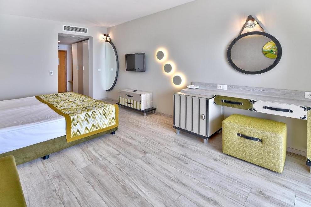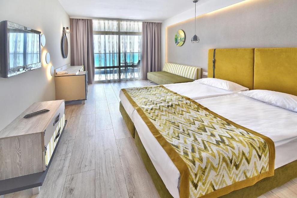 Хотелът разполага с 266 стаи, разпределени на 7 етажа. Стаите са с директна морска гледка или гледка към парка. Цялостна реновация на стаите е направена през 2018 г. Разполагат с тераса с масички и столове, кабела/сателитна телевизия, централна климатична система, телефон, гардероб, рафт за багаж, тоалетка, сушилник на терасата, мрежа против комари, баня с душ, сешоар и българска козметика, козметично огледало, сейф, минибар, меню за избор на възглавници, сет за чай/кафе. Ежедневно почистване на стаите.