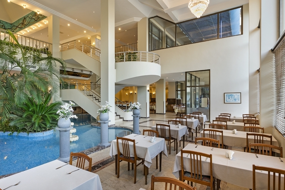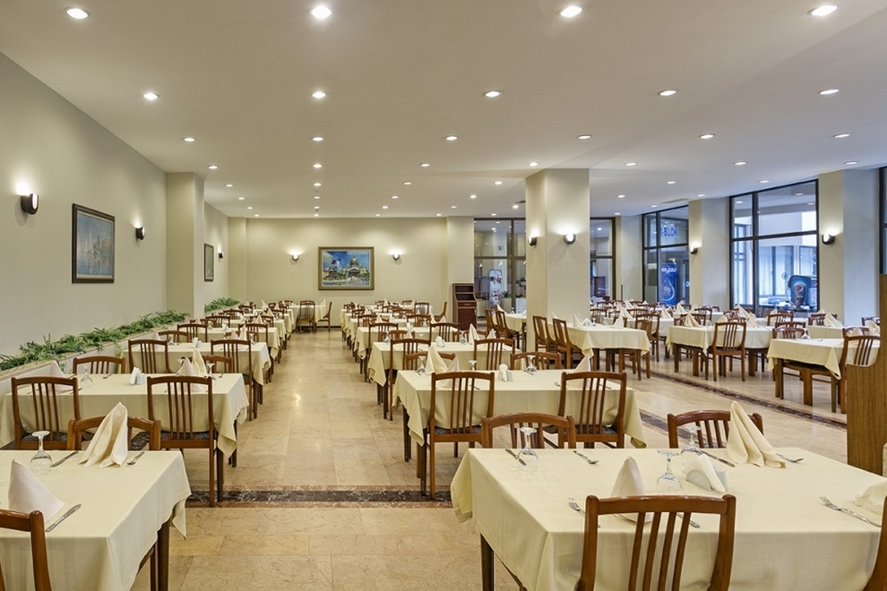 Основен ресторант и средиземноморски а`ла карт ресторант. Освежаващи напитки и закуски се поднасят в два лоби бара и снек бар.