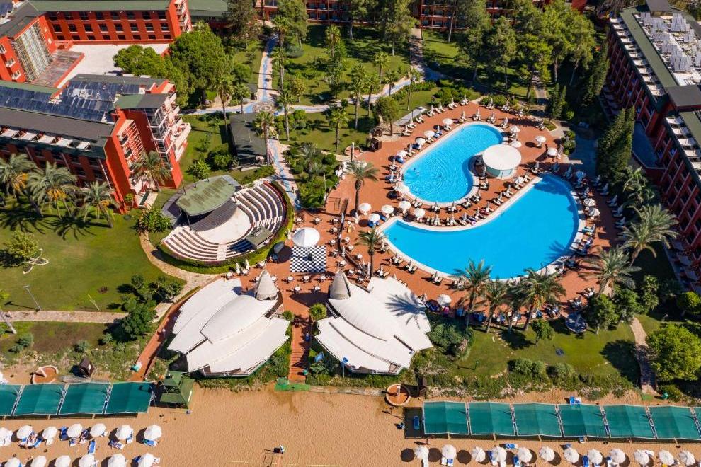 Хотелът се намира на 2 км от центъра на Инджекум, на 28 км от центъра на Алания. Гостите на три хотела (AQI Pegasos Club, AQI Pegasos Royal и AQI Pegasos Resort) могат да използват територията и на трите хотела (с изключение на барове и ресторанти). Последна реновация е направена през 2018 г.