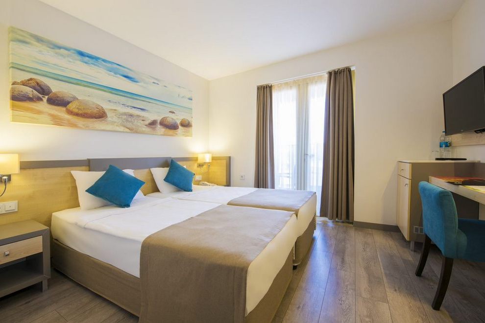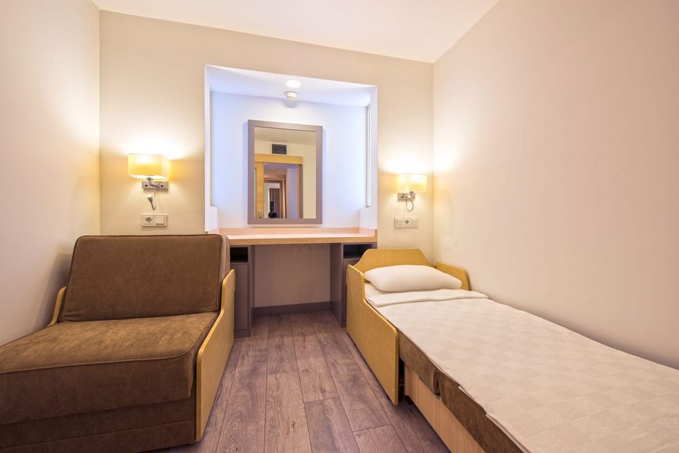 Хотелът се състои от четири 4-етажни сгради (има асансьори), в които са разпределени 417 климатизирани стаи. Те са оборудвани с телефон, телевизор, минибар, сейф, самостоятелна баня, халат, чехли, сешоар, балкон. Стаите се почистват шест пъти в седмицата, бельото се сменя на всеки два дни.