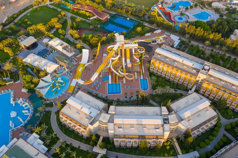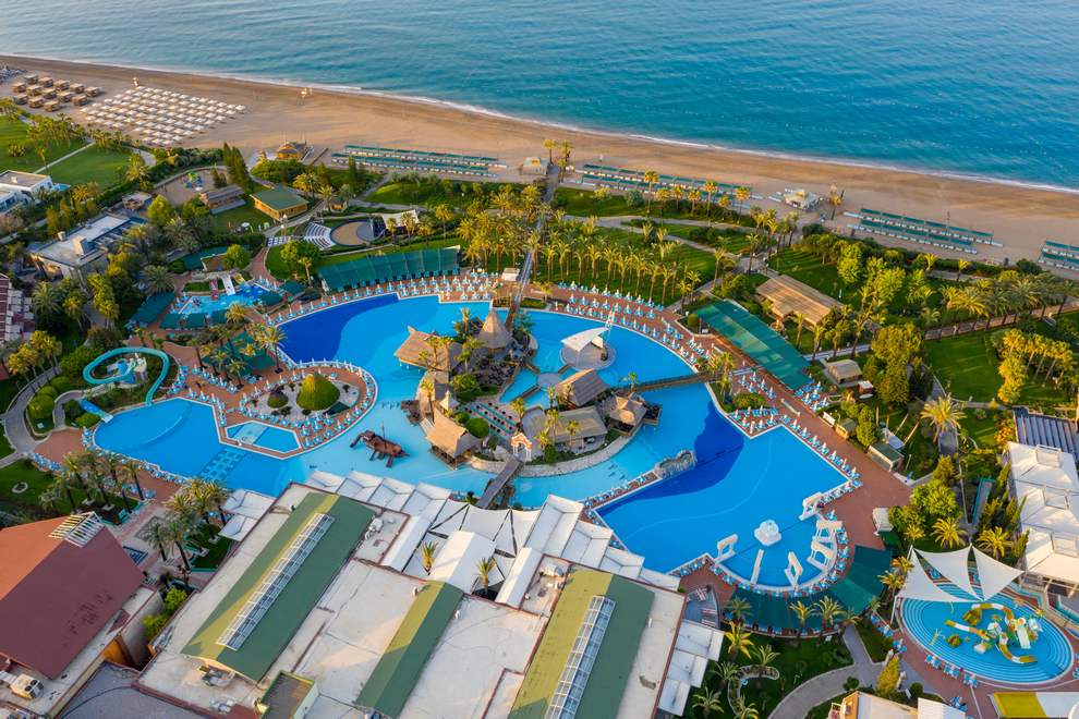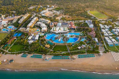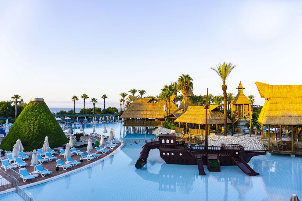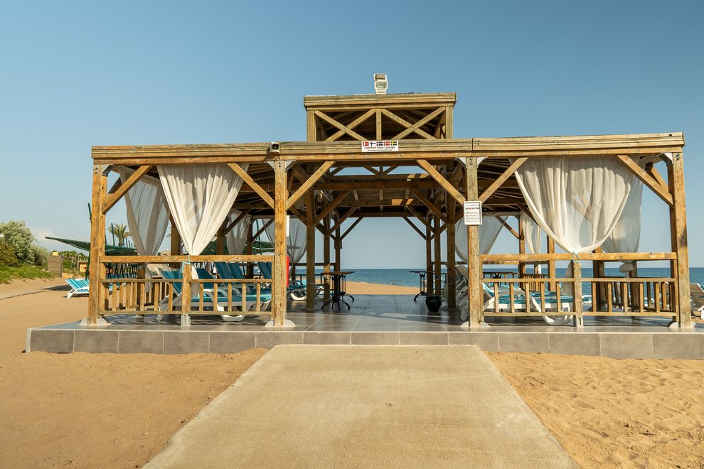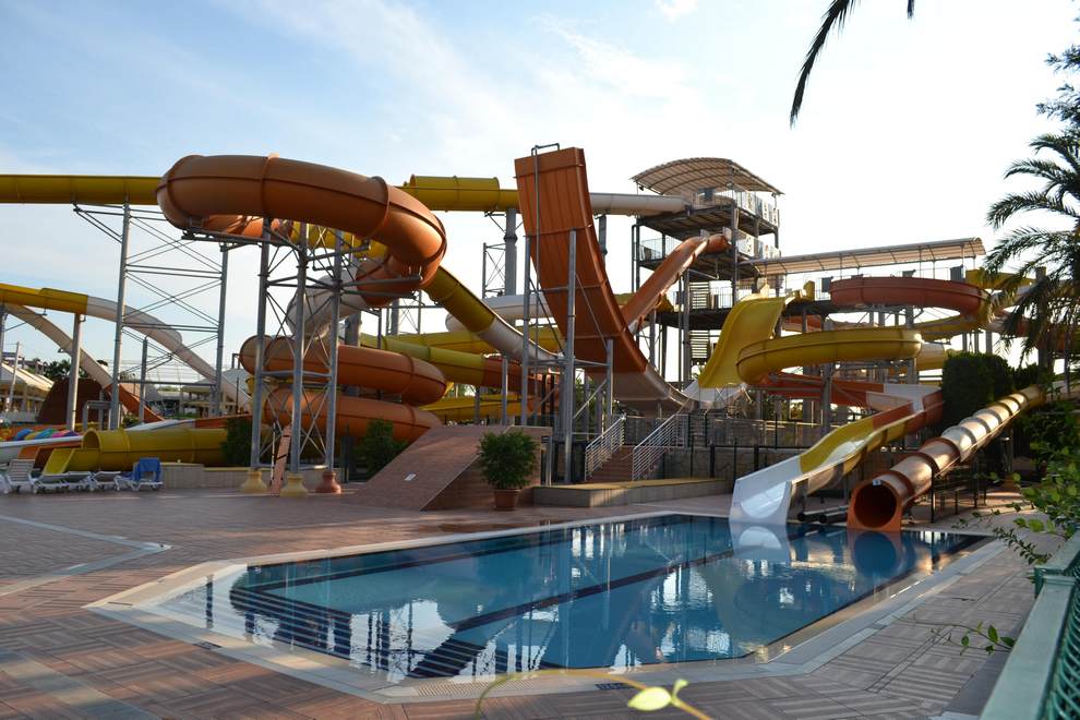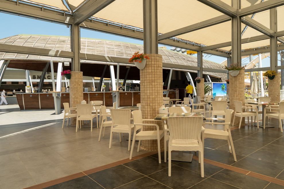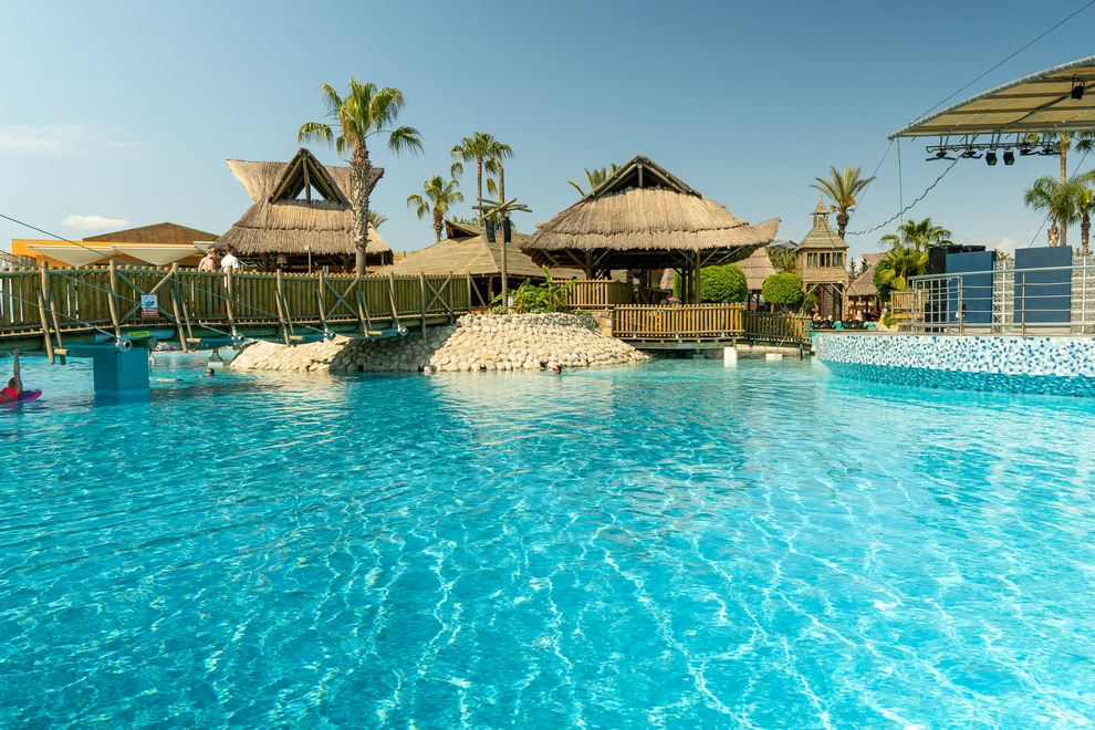 Собствен пясъчно-чакълест плаж на 430 м от хотела, 2 открити 1 детски басейн и пързалки за деца и възрастни.