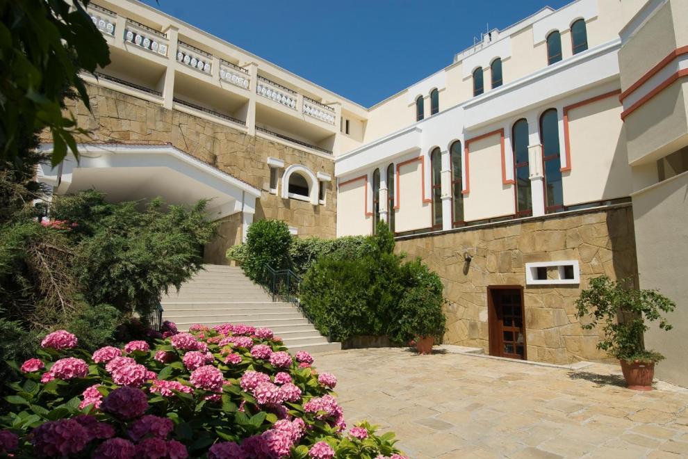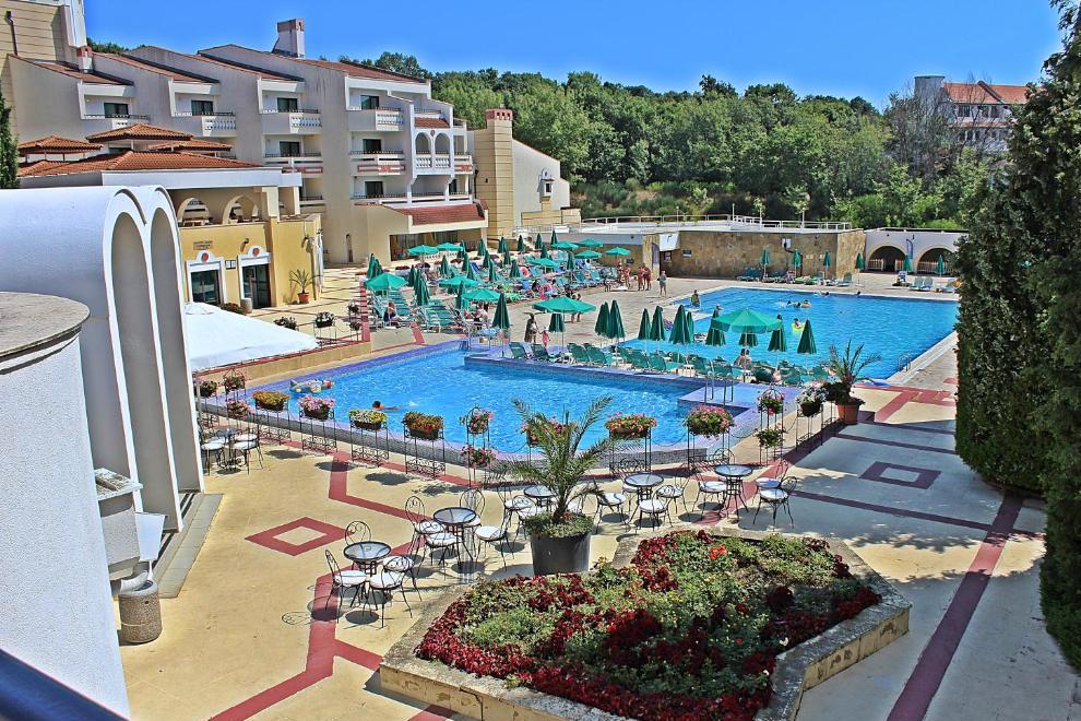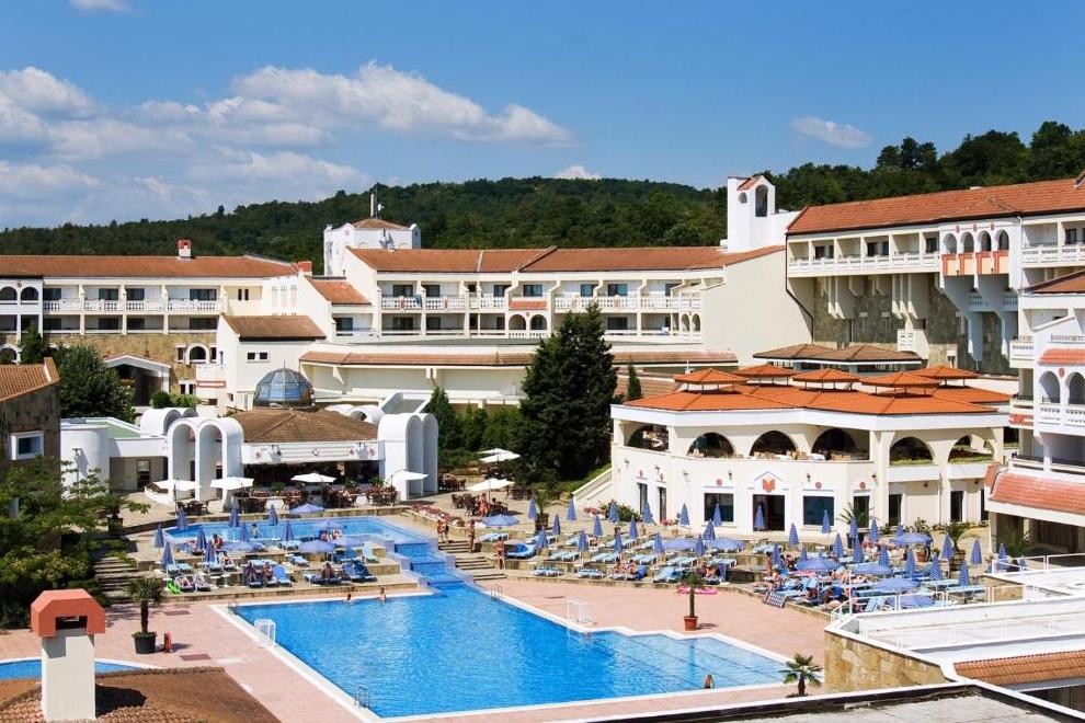 Хотел Пеликан е разположен в най-високата част на Дюни Роял Резорт. Със своя архитектурен стил, наподобяващ манастир от възрожденския период, хотелът предлага на гостите си чудесната възможност да се докоснат до българските дух и култура. Местоположението е достатъчно далеч от шума на плажа и същевременно с това разстоянието се изминава неусетно по красивите алеи към плажната ивица. Тишината в комбинация с уникалните цветни градини и живописните гледки разкриващи се от различните му сектори превръщат Пеликан в място за почивка в пълния смисъл на думата.