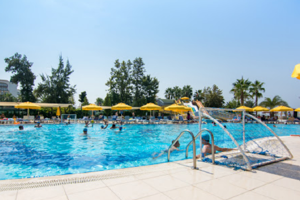 Хотелът има пясъчно-чакълест плаж с кей, един открит и един закрит басейни и 3 пързалки.