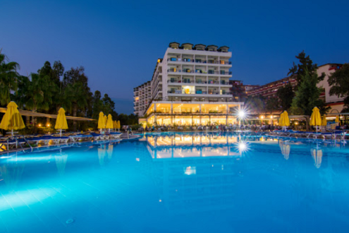Хотелът се намира на брега на морето, на 35 км от Алания и на 95 км от летището на Анталия.